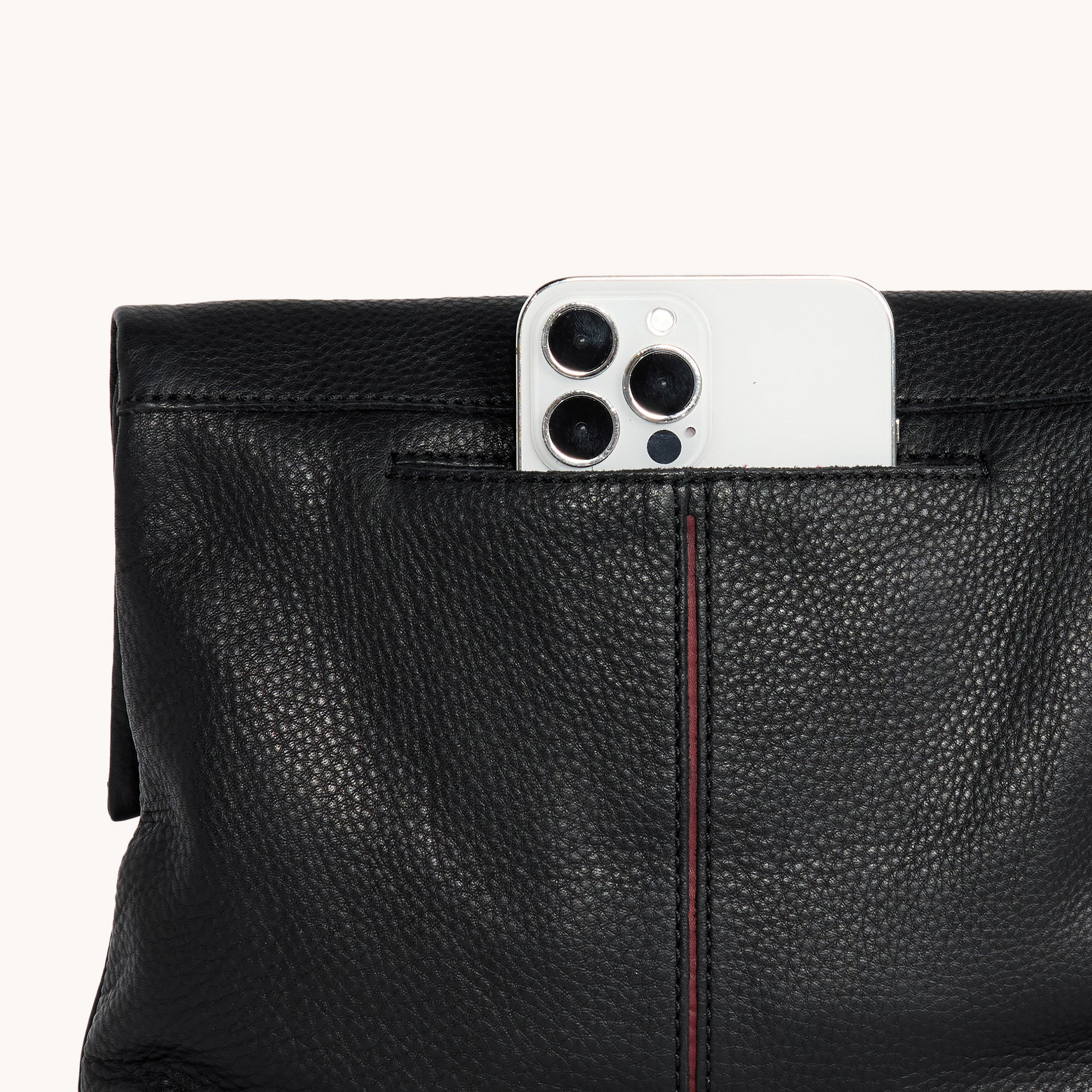 - Interior card slot and two drop pockets