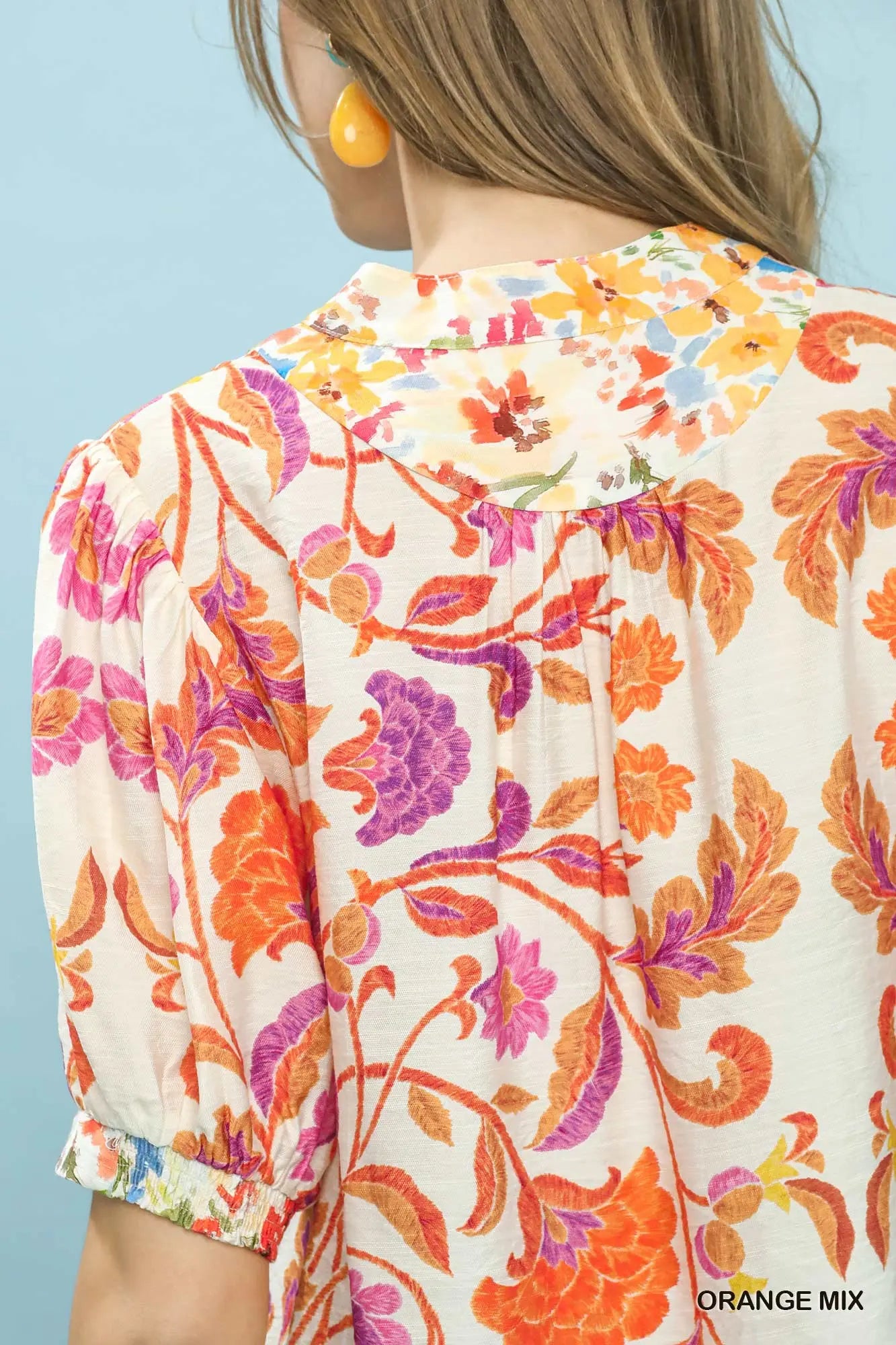 Mix Floral Split-Neck Short Sleeve Top