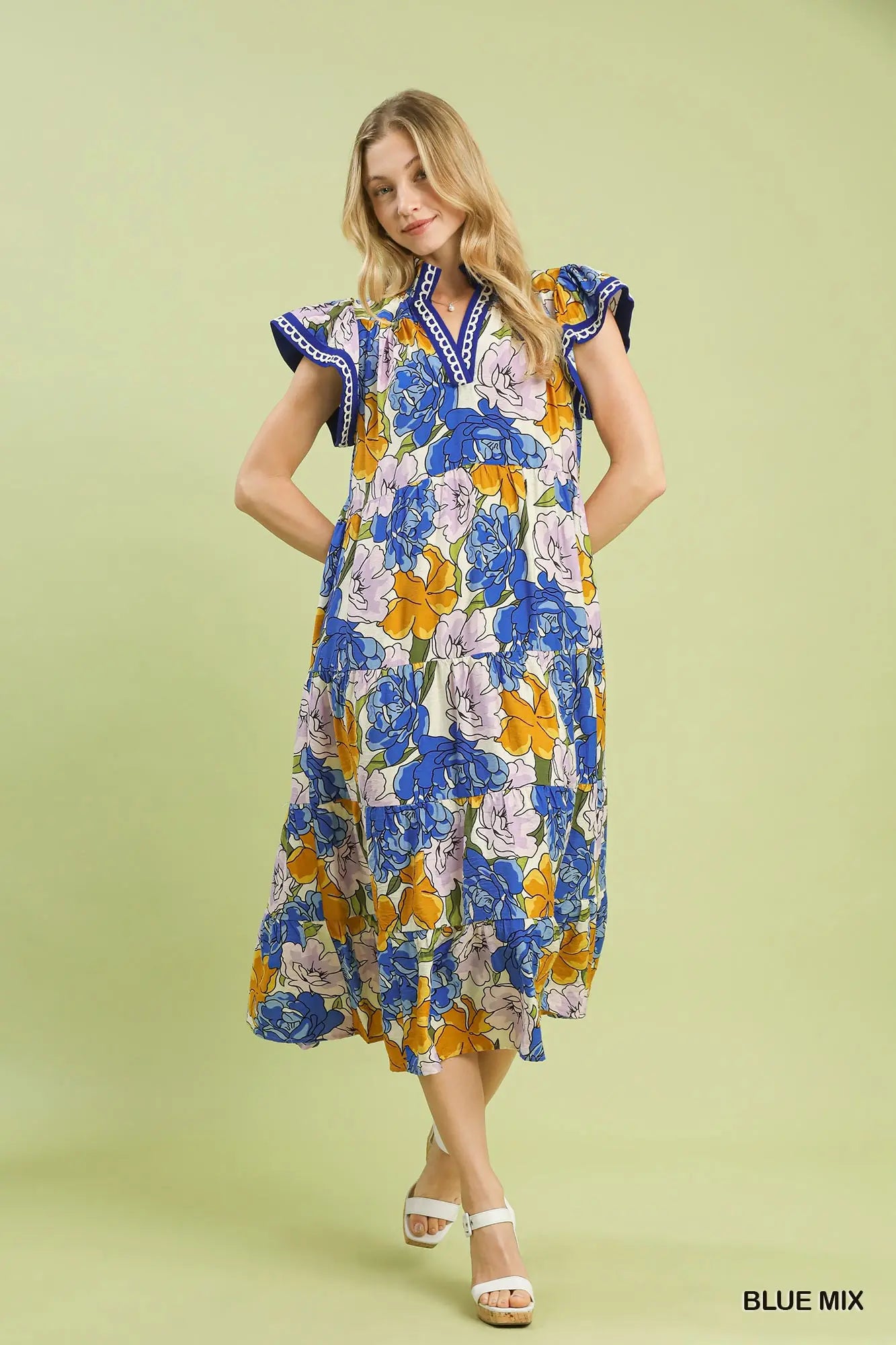 Mix Bold Floral Tiered Midi Dress