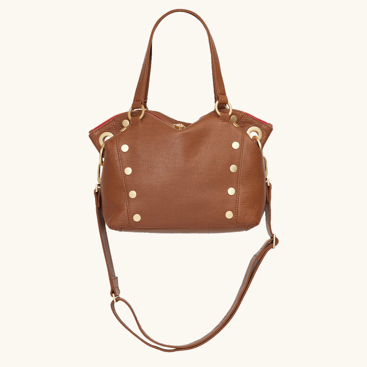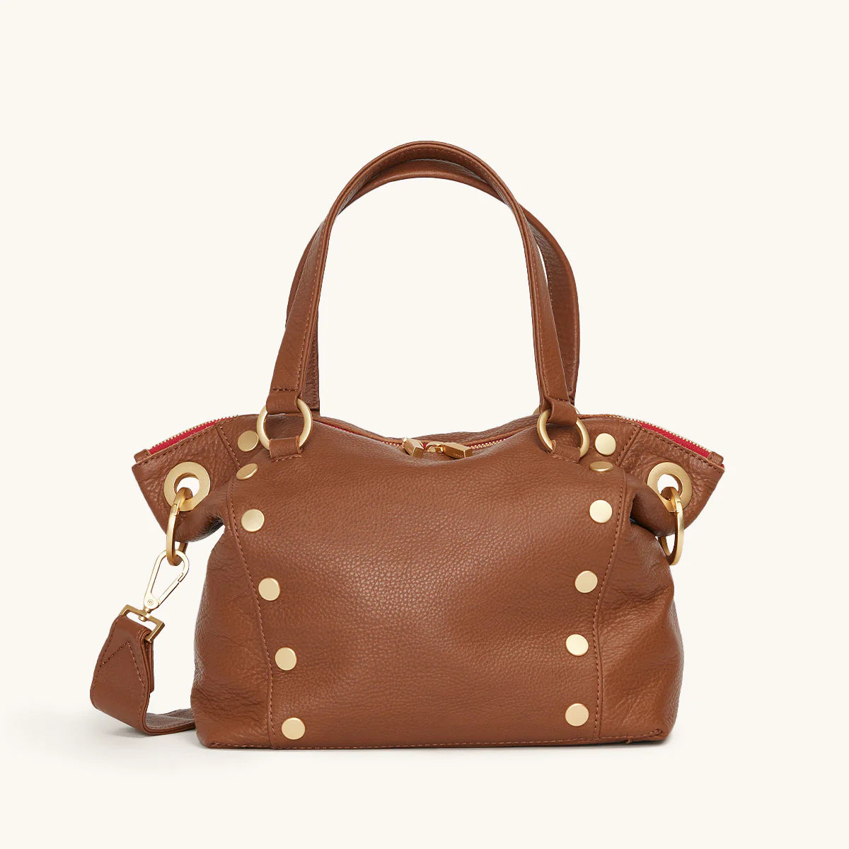 - Crafted with a soft pebbled leather with a hint of shine featuring a warm medium brown hue