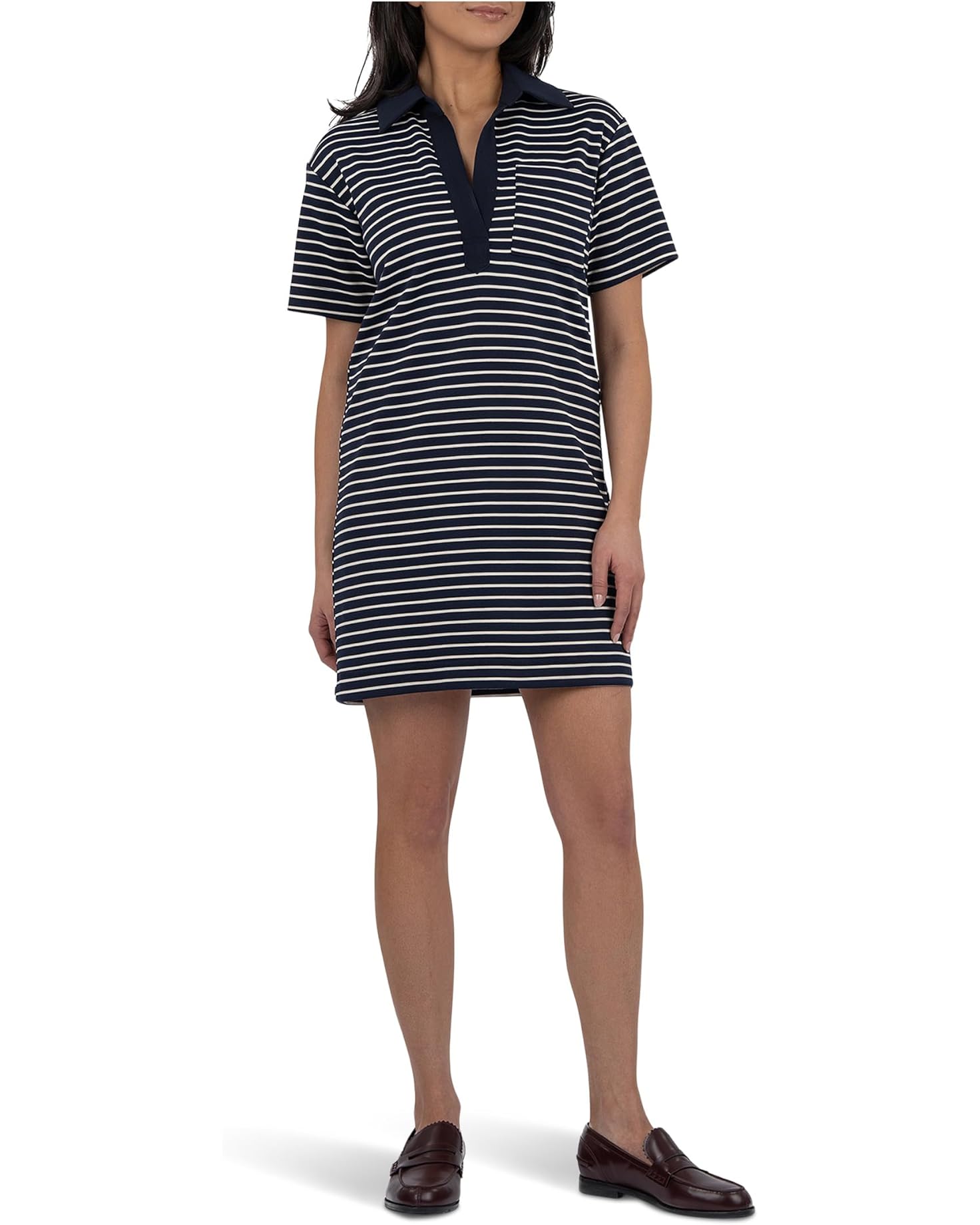 Showcase your chic yet sporty style wearing KUT from the Kloth™ Daphne Short Sleeve Fold Dress. It features a collared V-neckline, short sleeves, and an allover stripe print pattern.