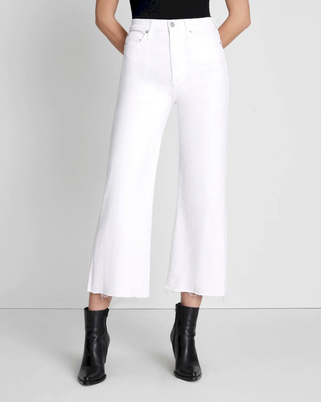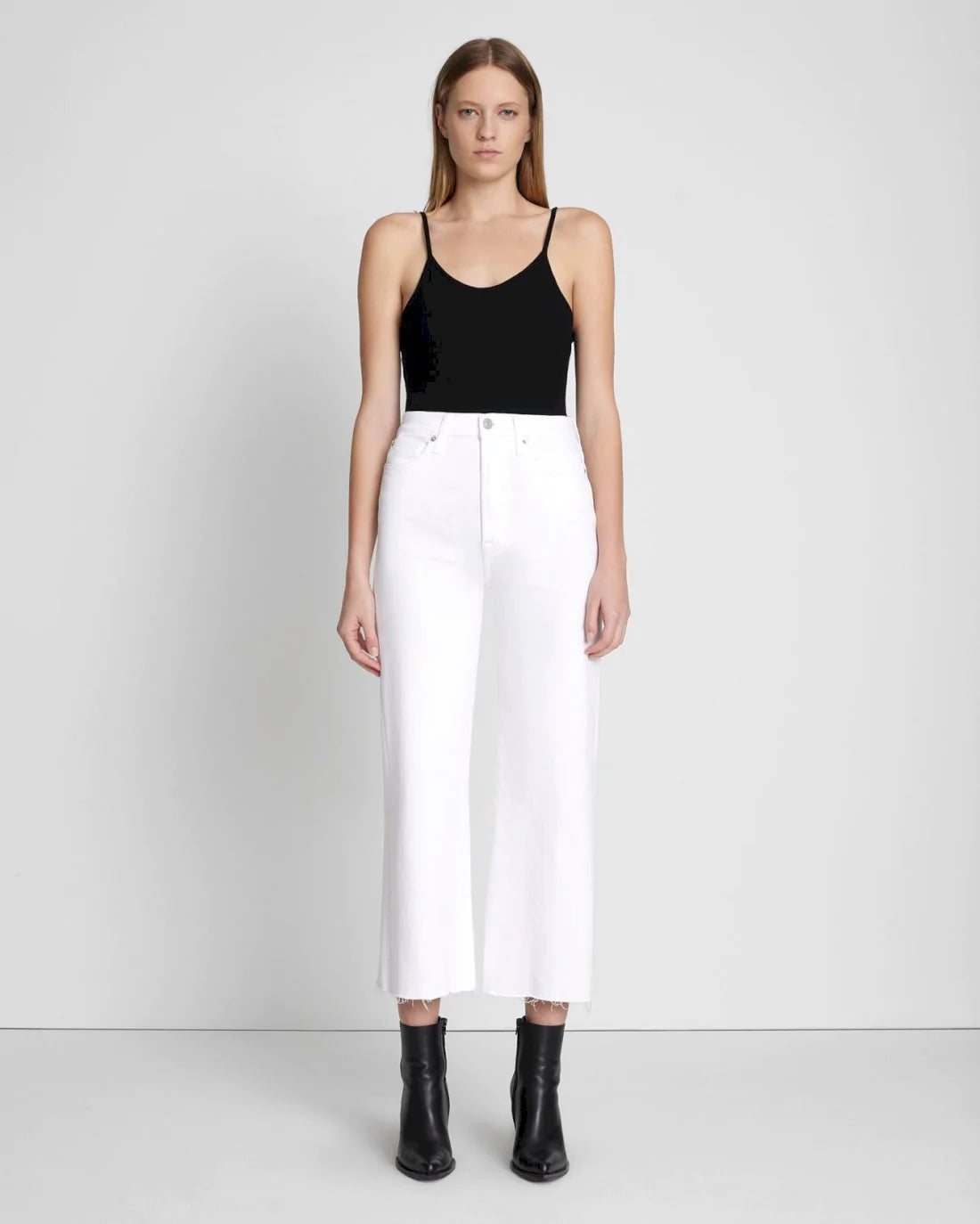 We borrowed our popular Dojo trouser silhouette and gave it an ultra-high rise and a cropped length. Crafted from our signature Luxe Vintage denim, which combines a vintage look and the perfect amount of stretch. With a fresh white wash and raw cropped hem, you can pair them with anything from silk blouses to plain white tees for a chic and easy look. All year around.