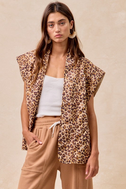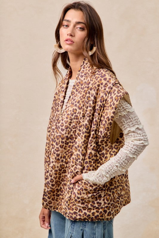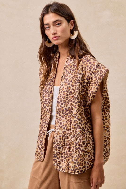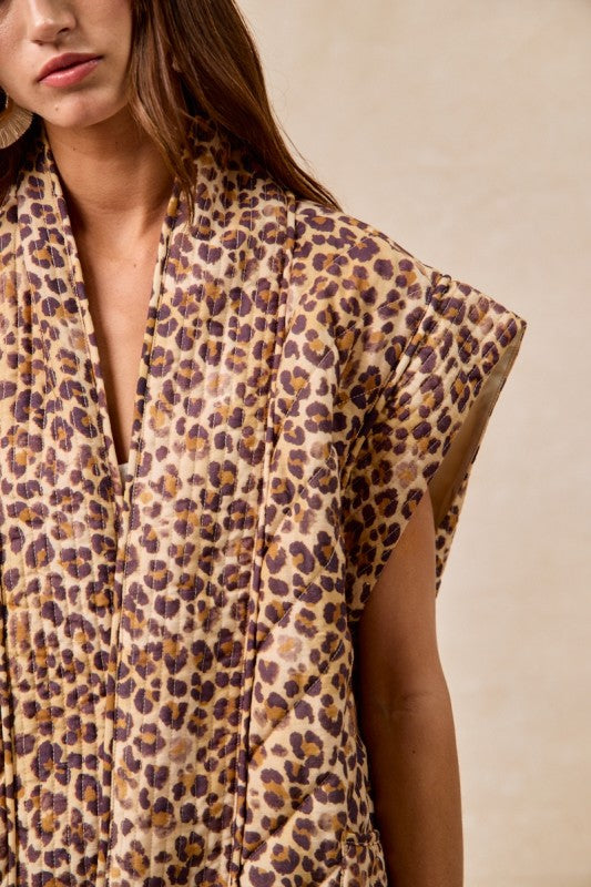 Embrace your wild side with The Bella Wild Side Vest, featuring a bold leopard print quilted design that adds a playful edge to any outfit. Crafted from a cozy blend of 80% cotton and 20% nylon, this vest offers both comfort and a lightweight warmth perfect for layering. Whether you're headed out for an adventure or simply want to make a statement, its vibrant pattern and flattering fit ensure you’ll stand out with confidence and flair. Add a touch of fierce fun to your wardrobe with this versatile and stylish vest.