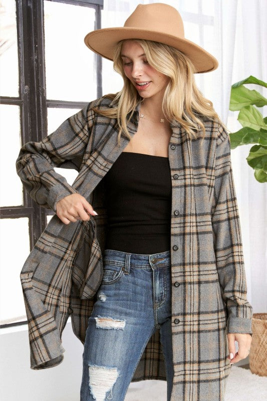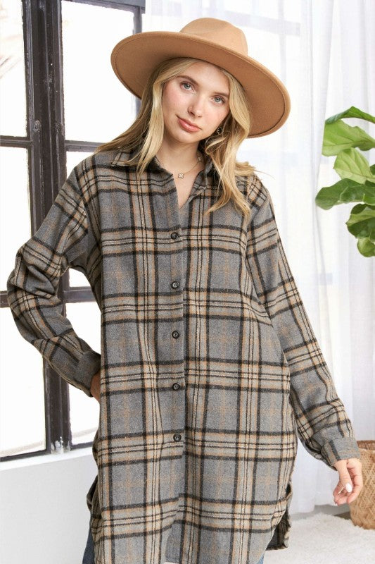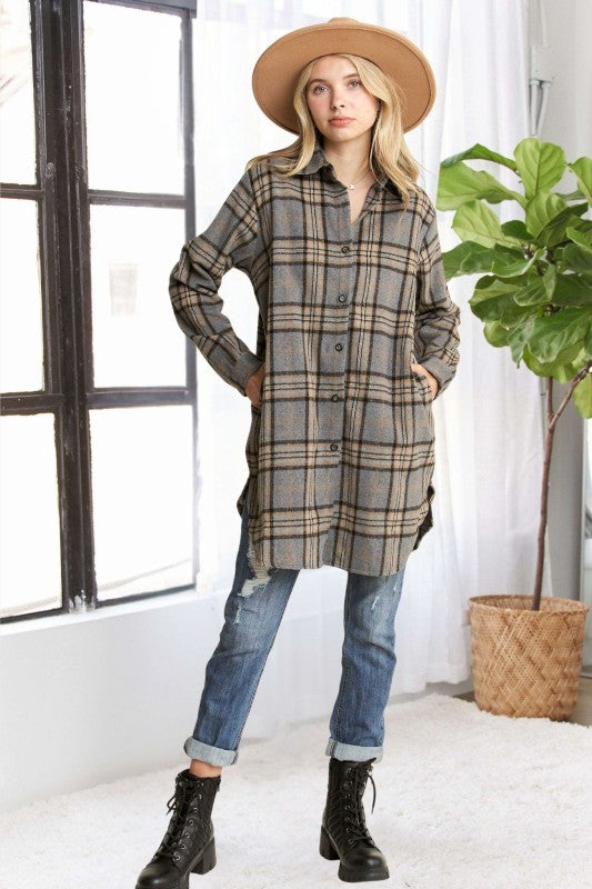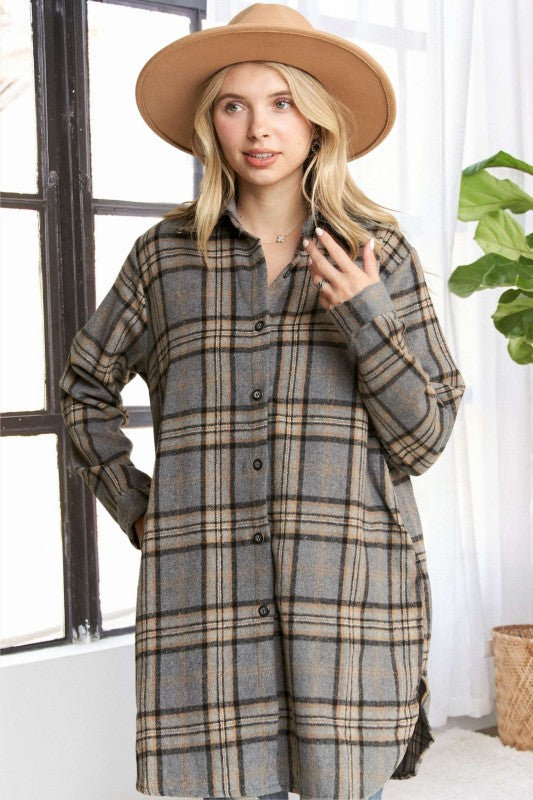 Introducing The Madelyn—your new go-to flannel shirt dress that's equal parts cozy and chic! This playful piece features a classic check pattern that works overtime, whether you're layering it over a tee or wearing it solo. With long sleeves to keep you comfortable through the seasons, The Madelyn is crafted from 100% polyester for easy care and all-day wearability. Throw it on with sneakers for a casual vibe, or dress it up with boots and accessories for something a little more polished. It's the kind of versatile staple that makes getting dressed actually fun.