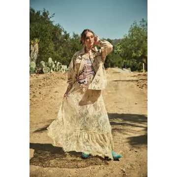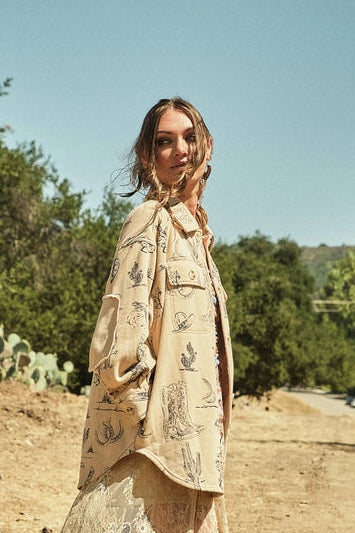The Westerly Shacket is your new go-to layer for effortless style. This relaxed-fit shacket features full-length sleeves, a classic collared neckline, and functional flap chest pockets—perfect for stashing your essentials. The standout allover western-inspired print adds personality to any outfit, whether you're pairing it with jeans for a casual weekend vibe or throwing it over a dress for unexpected edge. Crafted from 100% cotton, it's breathable and comfortable enough to wear all day long. The loose fit makes it ideal for layering or wearing solo. Our model is 5'8" tall and wears a size Small.