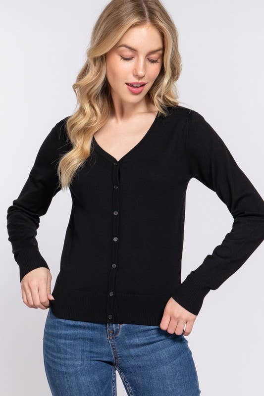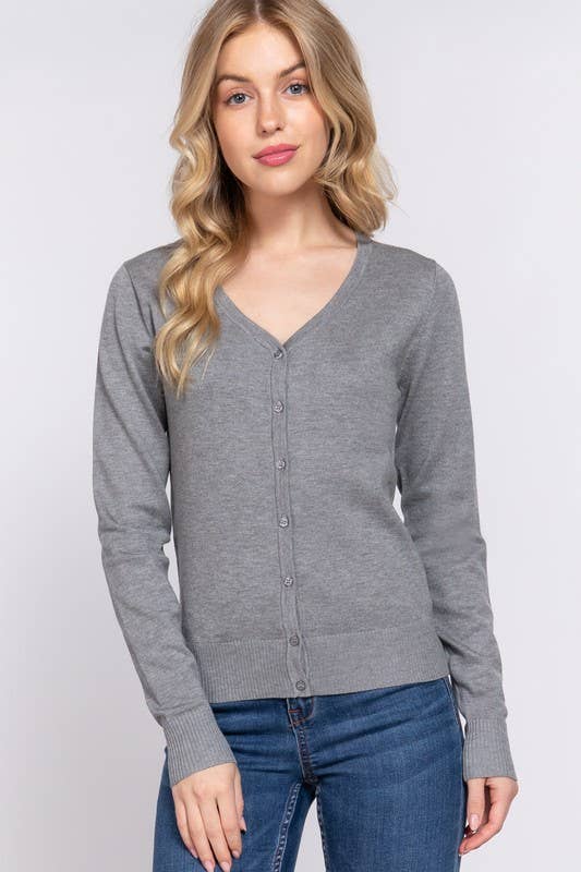 This long-sleeve, V-neck sweater cardigan combines timeless style with practical design. Crafted from a blend of 80% rayon and 20% polyester, it offers a refined look and comfortable fit. A versatile button-down essential, this cardigan is a sophisticated addition to any wardrobe.