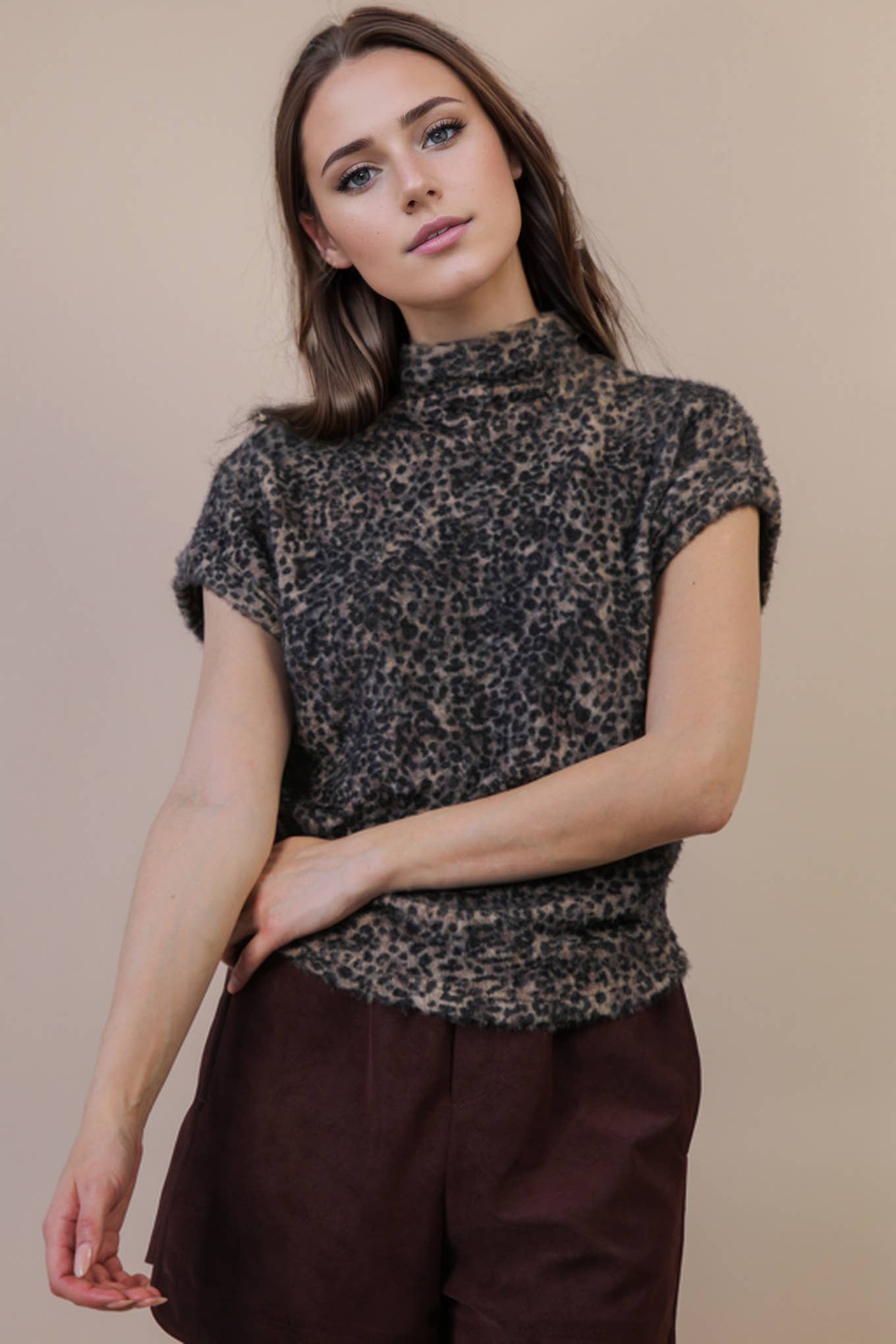 - This playful Leopard Soft Knit Vest Top features a cozy mock neck and a comfy side elastic detail for a perfect fit. With its soft knit fabric and stylish round hem, it’s a fun and easy piece for your outfit Made from 96% polyester and 4% spandex for stretch and comfort.
