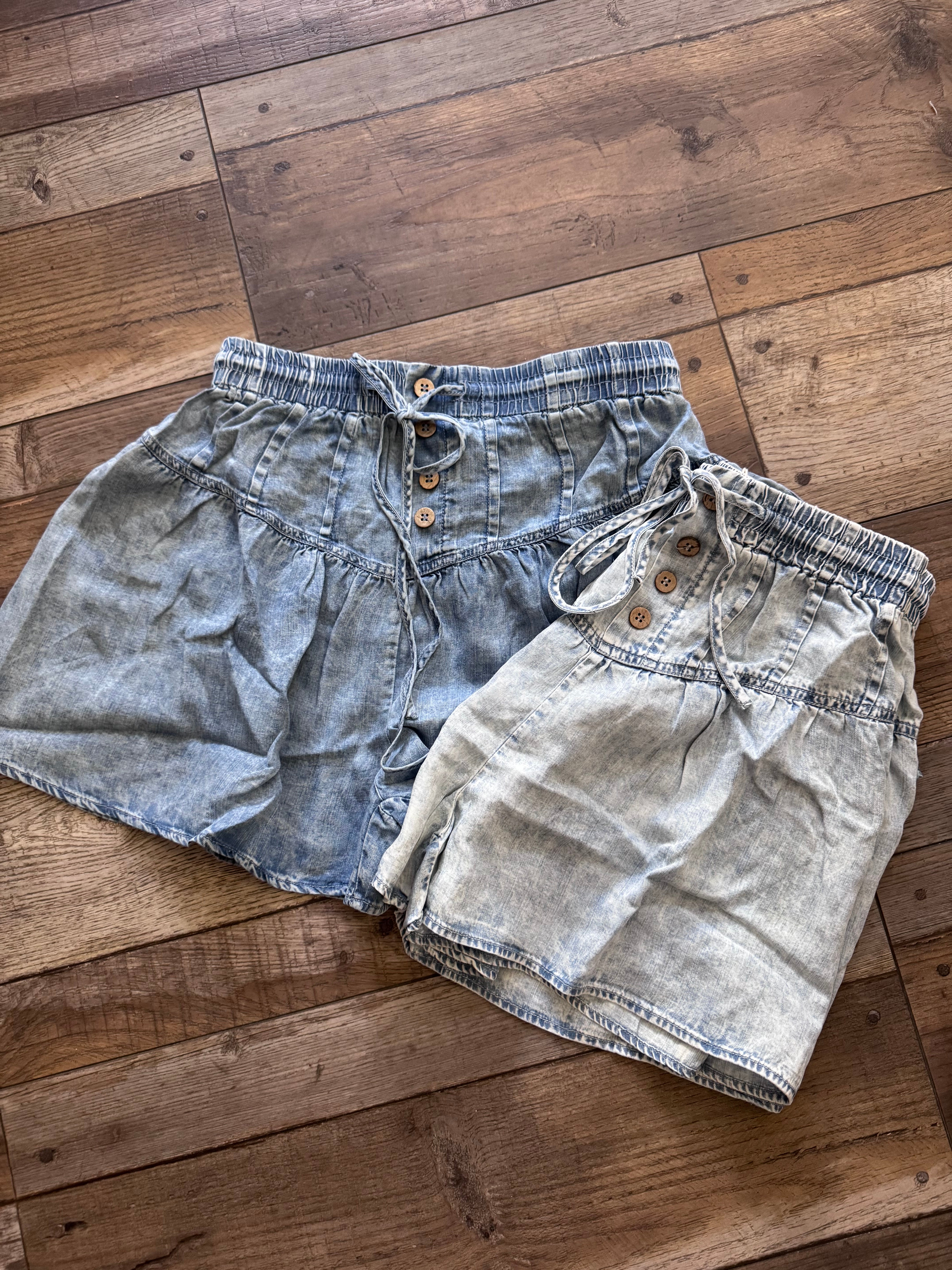 Effortless, flattering, and made for everyday wear—these light wash drawstring denim shorts are a warm-weather must-have. Designed with a high-rise elastic waistbandand adjustable drawstring tie, they offer a comfortable, custom fit while keeping a polished look. The soft, lightweight denim-style fabric drapes beautifully, giving you an easy, relaxed silhouette without feeling stiff or restrictive.