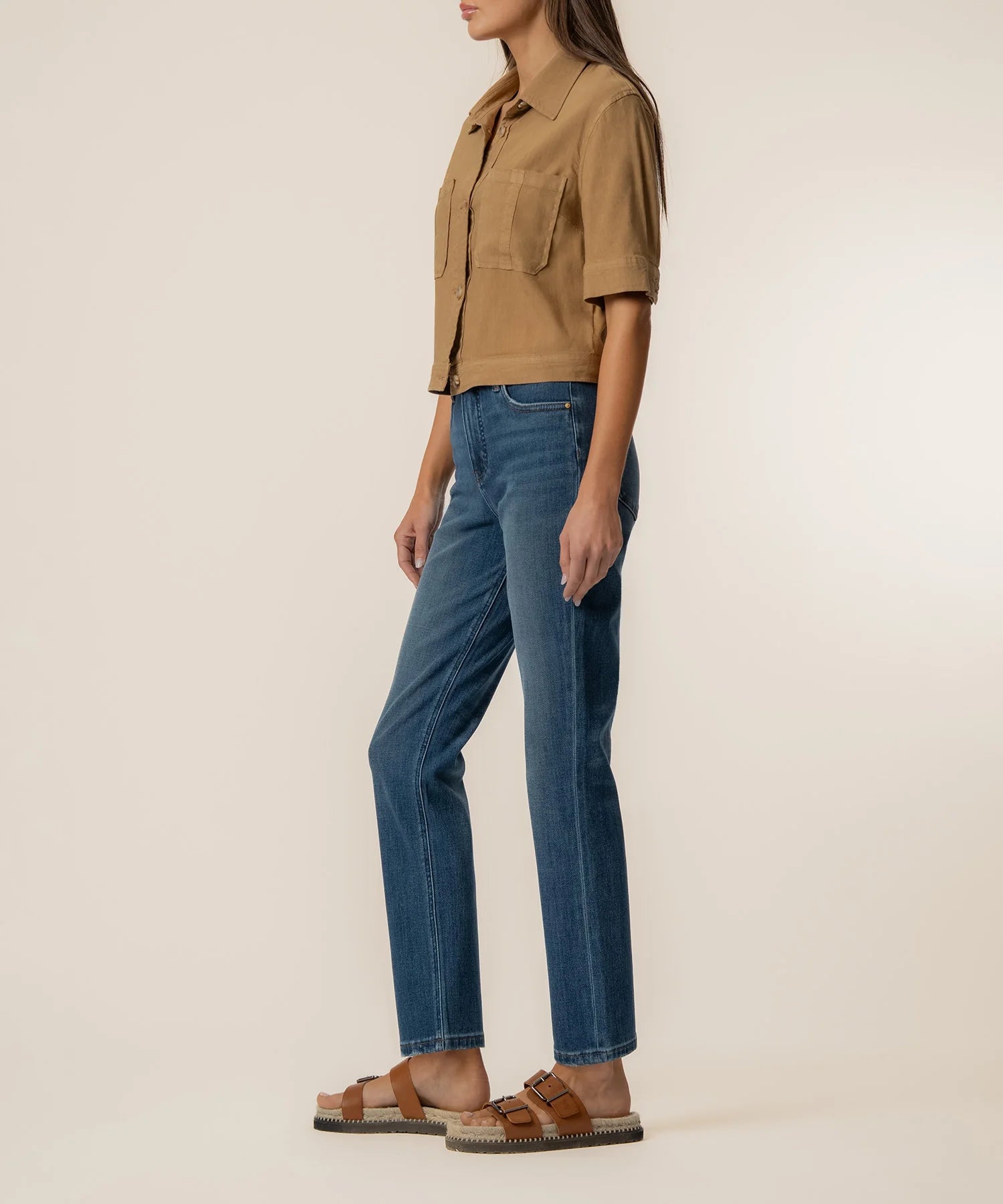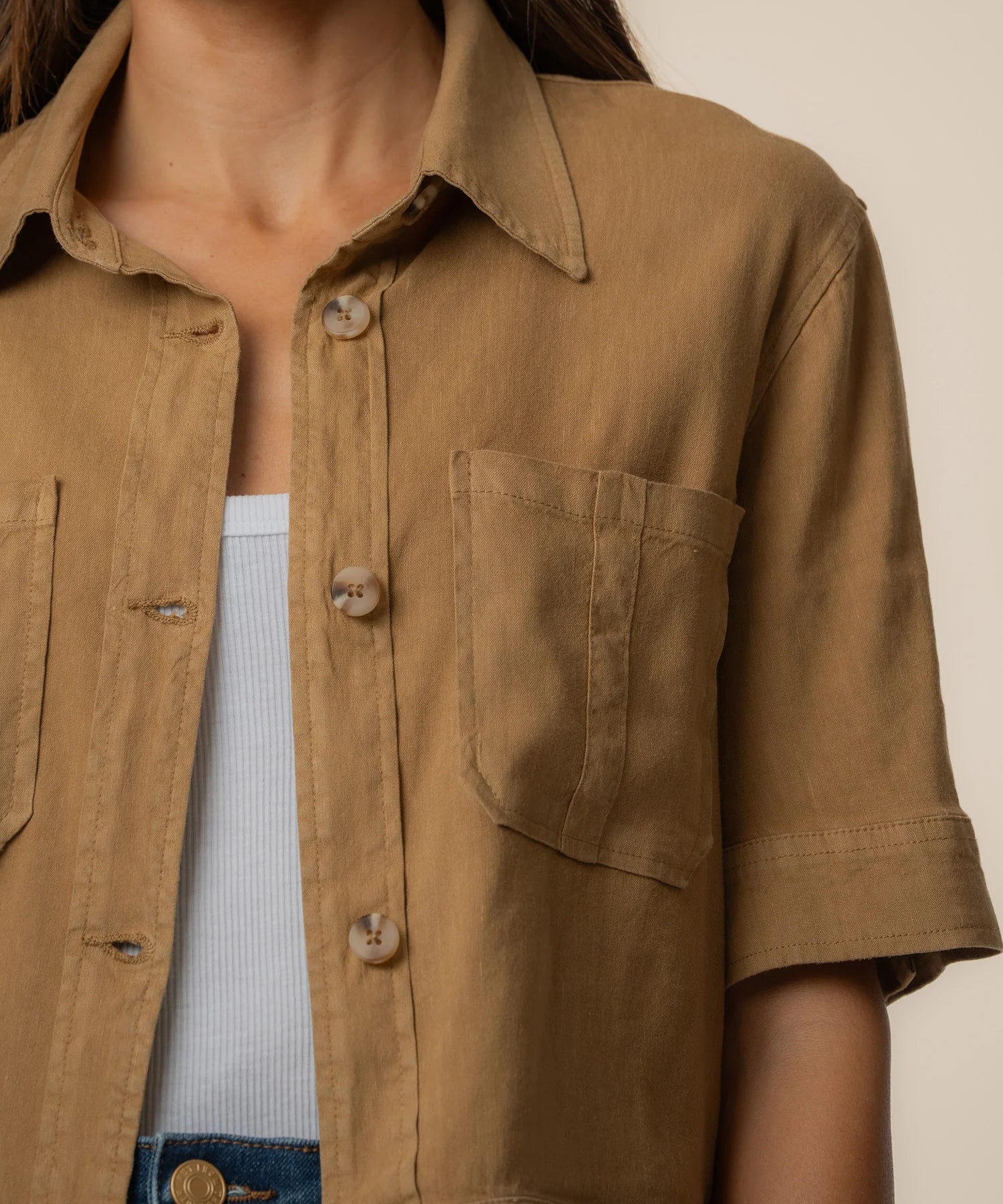 - This short sleeve jacket is made from a breathable linen mixed material for a relaxed, comfortable feel. Featuring practical patch pockets and a classic button-down front, it offers a modern, craft-inspired look. Perfect for wearing layered over your favorite basics or on its own for easy, everyday style.