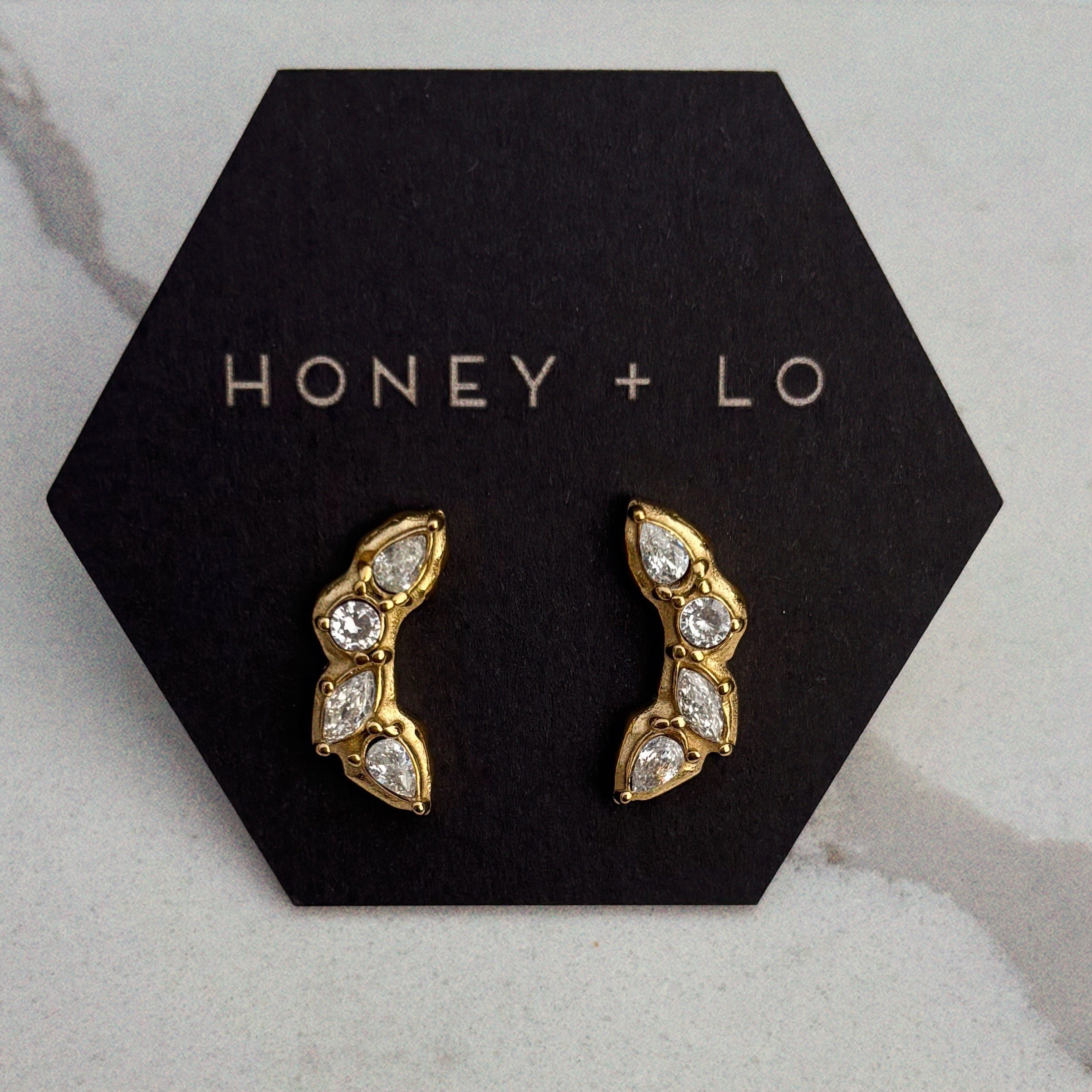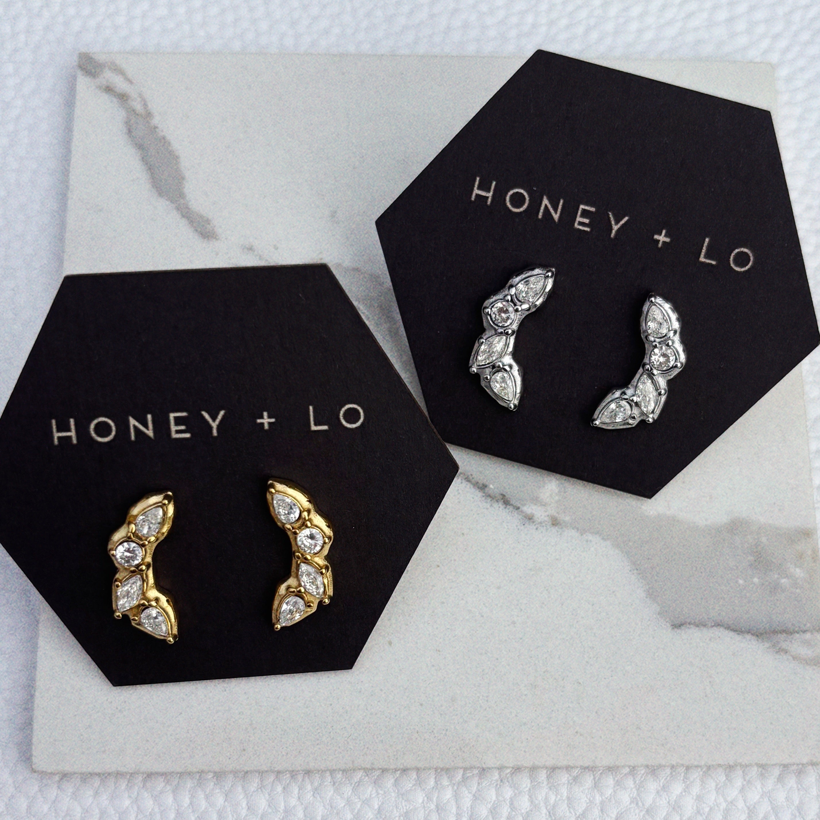 These free form crystal studs are anything but ordinary. Each pair showcases beautifully irregular stone shapes that catch the light in unexpected ways, all wrapped up in your choice of gleaming gold or silver plating. Perfect for adding a touch of sparkle and personality to any look, these are the earrings you'll reach for again and again.