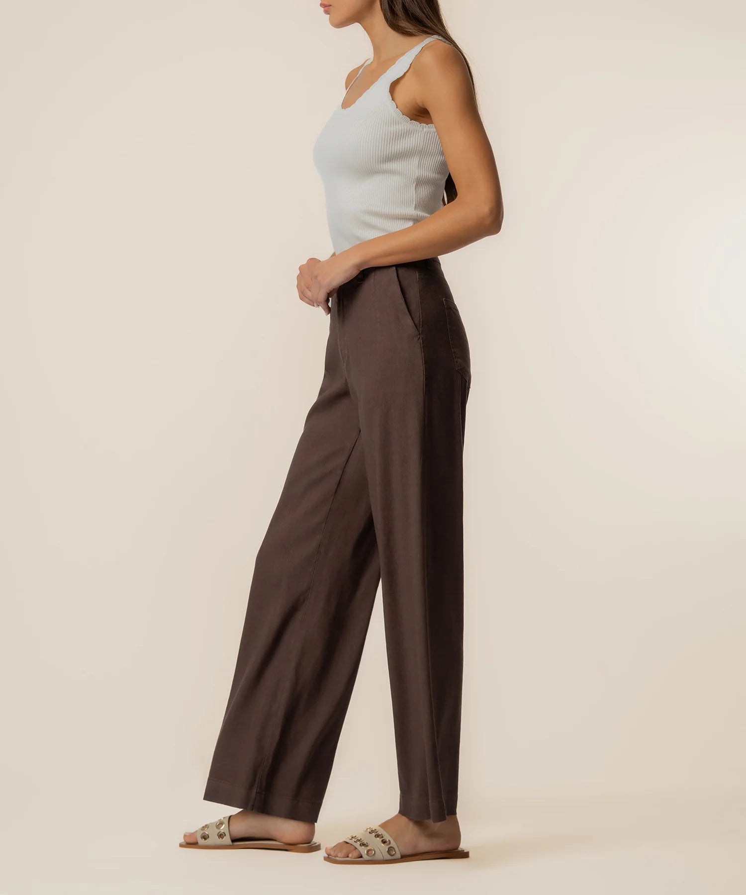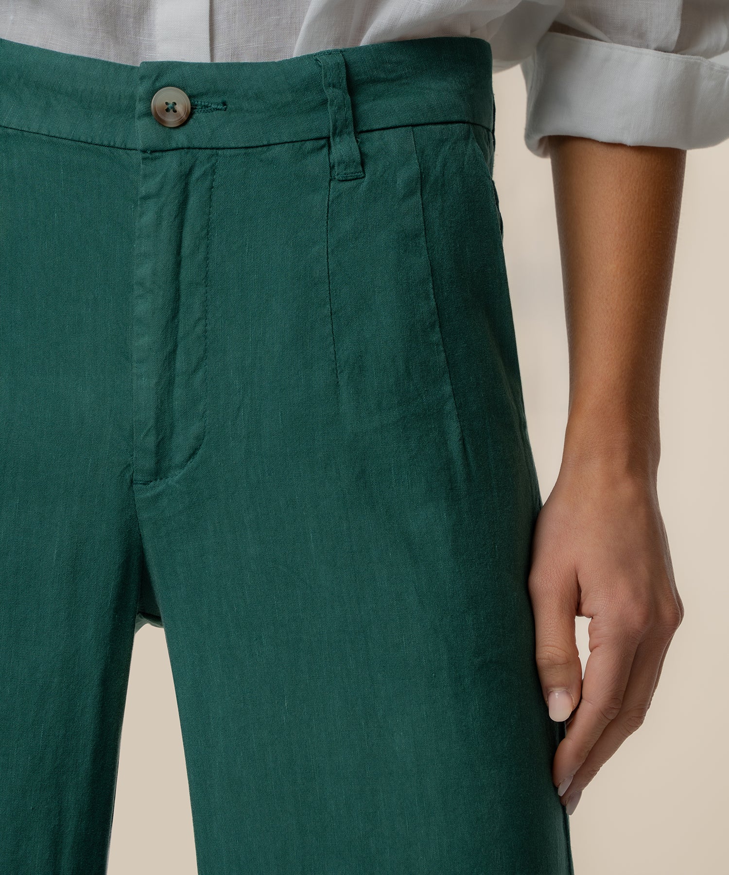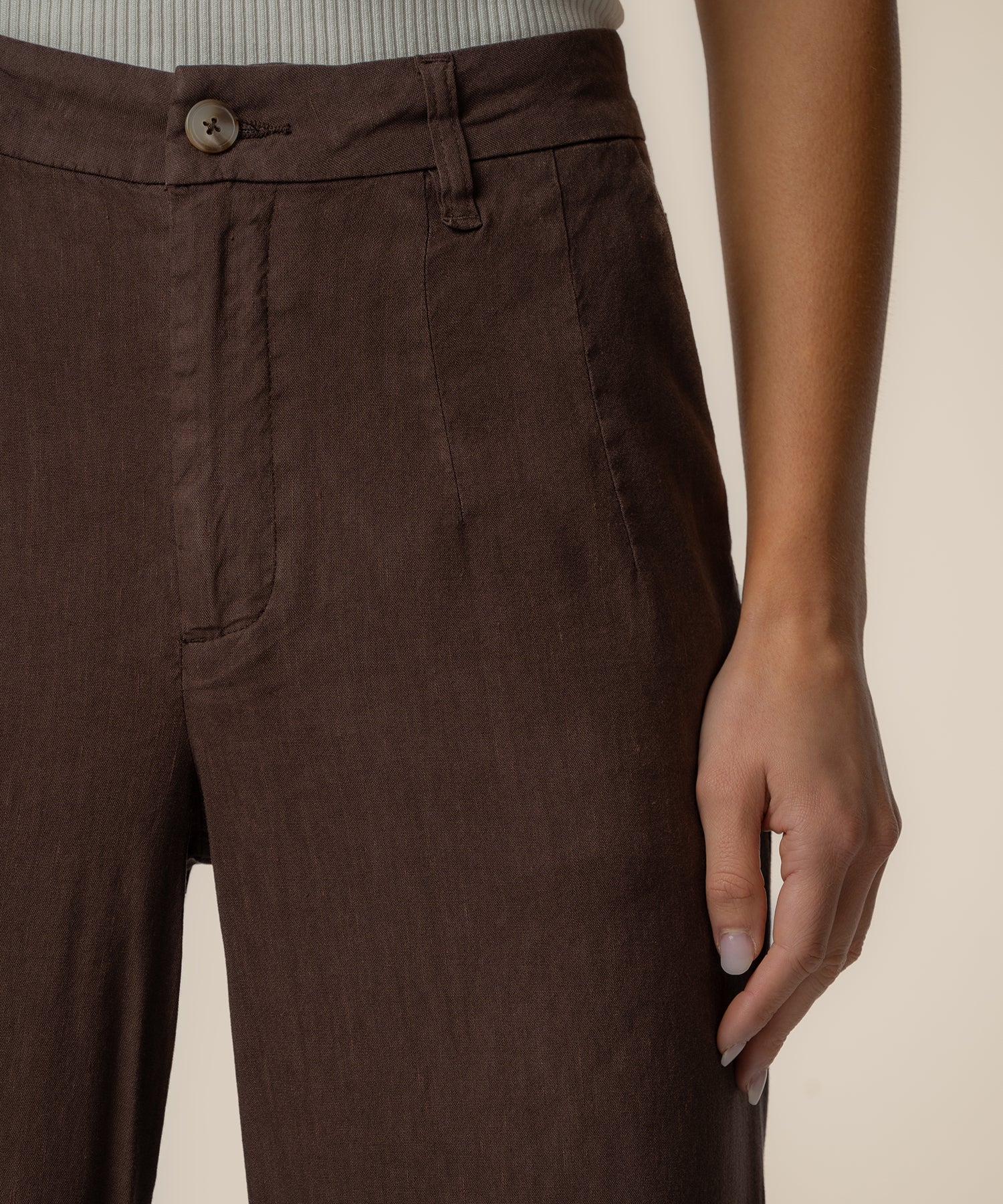- These high-rise pants feature a wide straight leg for a clean, elevated silhouette. A front pleat adds tailored detail and subtle structure, while the linen-mixed material keeps the look lightweight and breathable. Designed for effortless styling, these pants offer a relaxed yet refined feel that works for both casual and polished outfits.