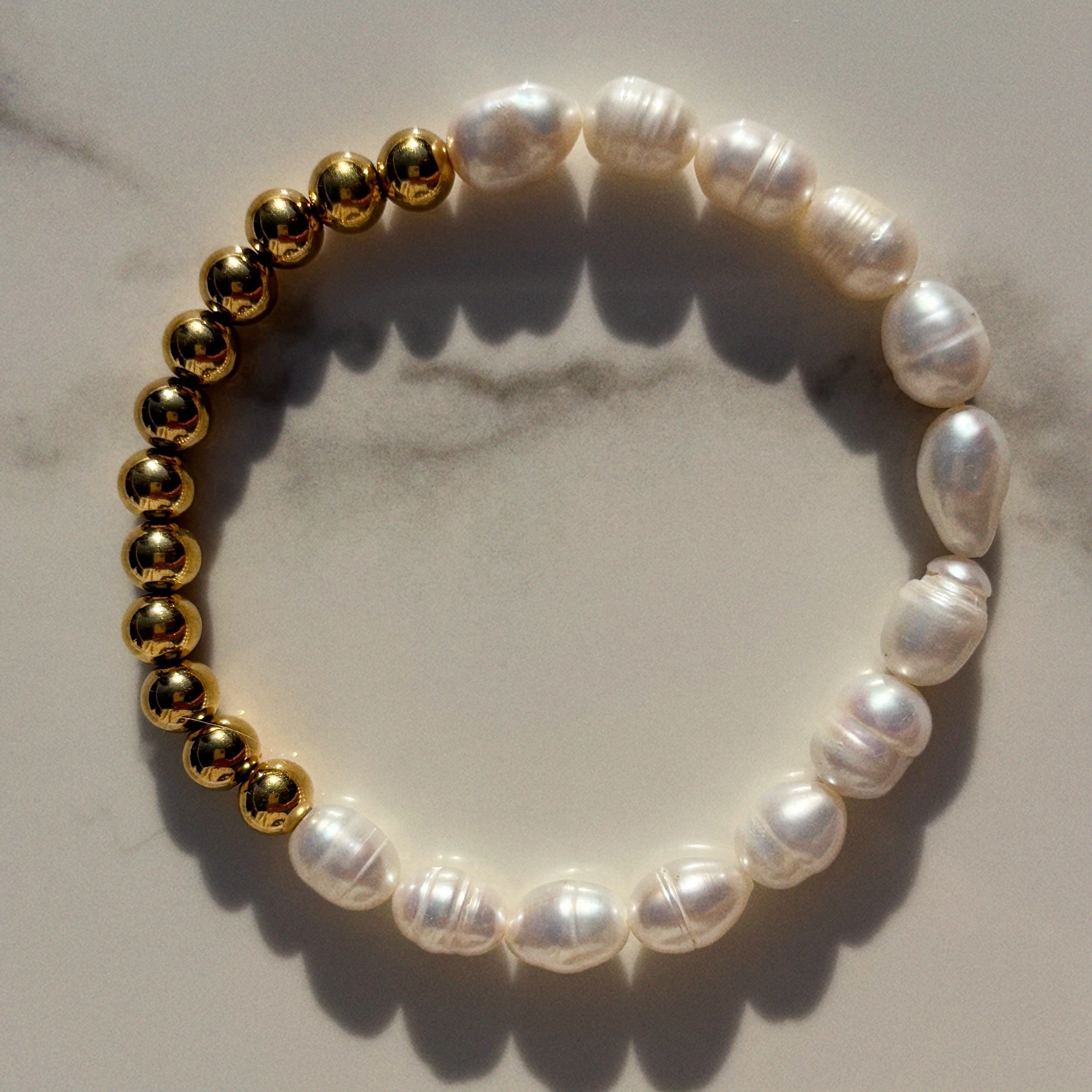 Freshwater pearls meet gleaming gold stainless steel in this stretchy bracelet that's ready for any adventure—water, wear, and everything in between. Effortless elegance that moves with you.