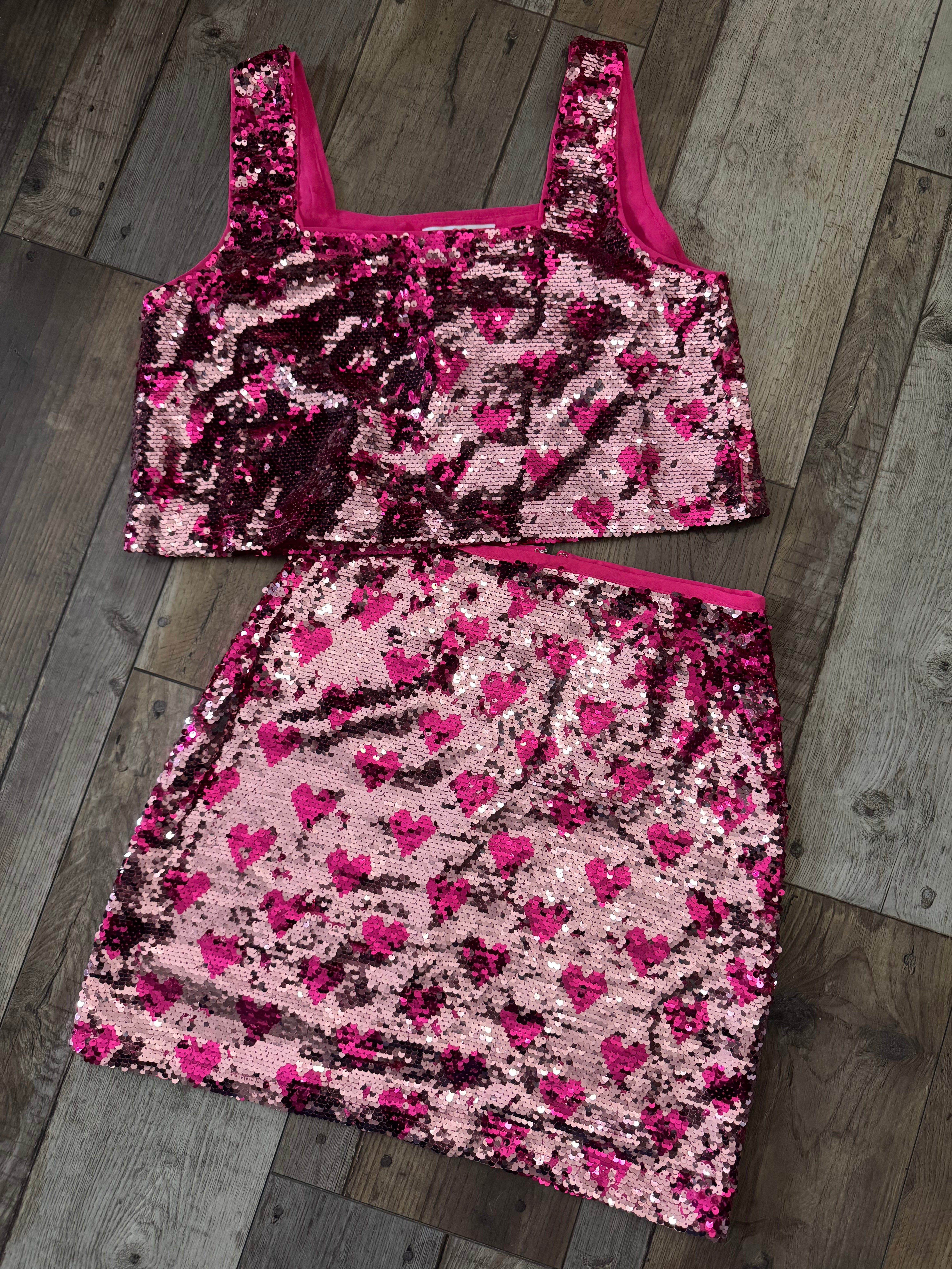 Skirt featuring reverse sequins that shift with movement, creating dynamic visual interest. The structured silhouette offers a polished foundation for layering or standalone wear, making it a versatile addition to contemporary wardrobes.
