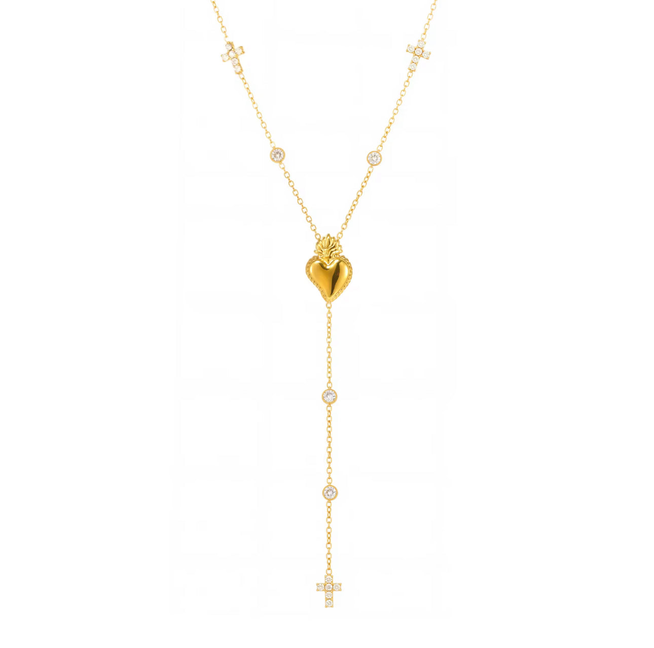 The Sacred Heart Lariat is a stunning piece of jewelry featuring delicately placed crystals with a sacred heart focal point. It’s elegant and bold design is sure to make a statement. Crafted with precision and expertly designed, this necklace is the perfect accessory for any occasion.