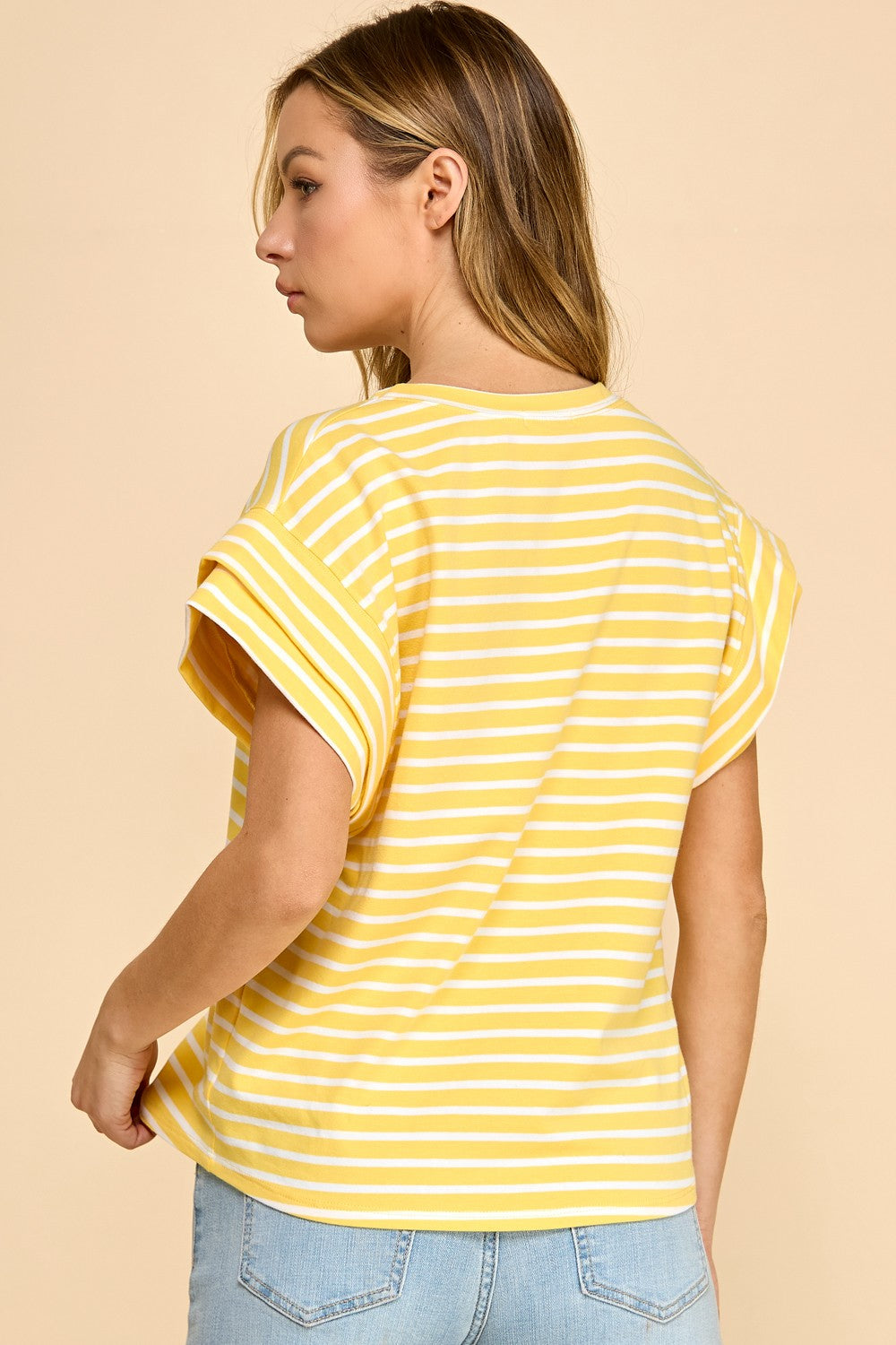 Effortless style meets everyday comfort in The Daisy Stripe Tee. This yellow and white striped essential features breathable cotton construction with a relaxed fit and classic round neckline—perfect for warm weather wear. The timeless stripe pattern pairs seamlessly with denim, shorts, or skirts, making it an adaptable wardrobe staple that works for casual outings, weekend trips, or laid-back days at home. Simple, versatile, and always in style.