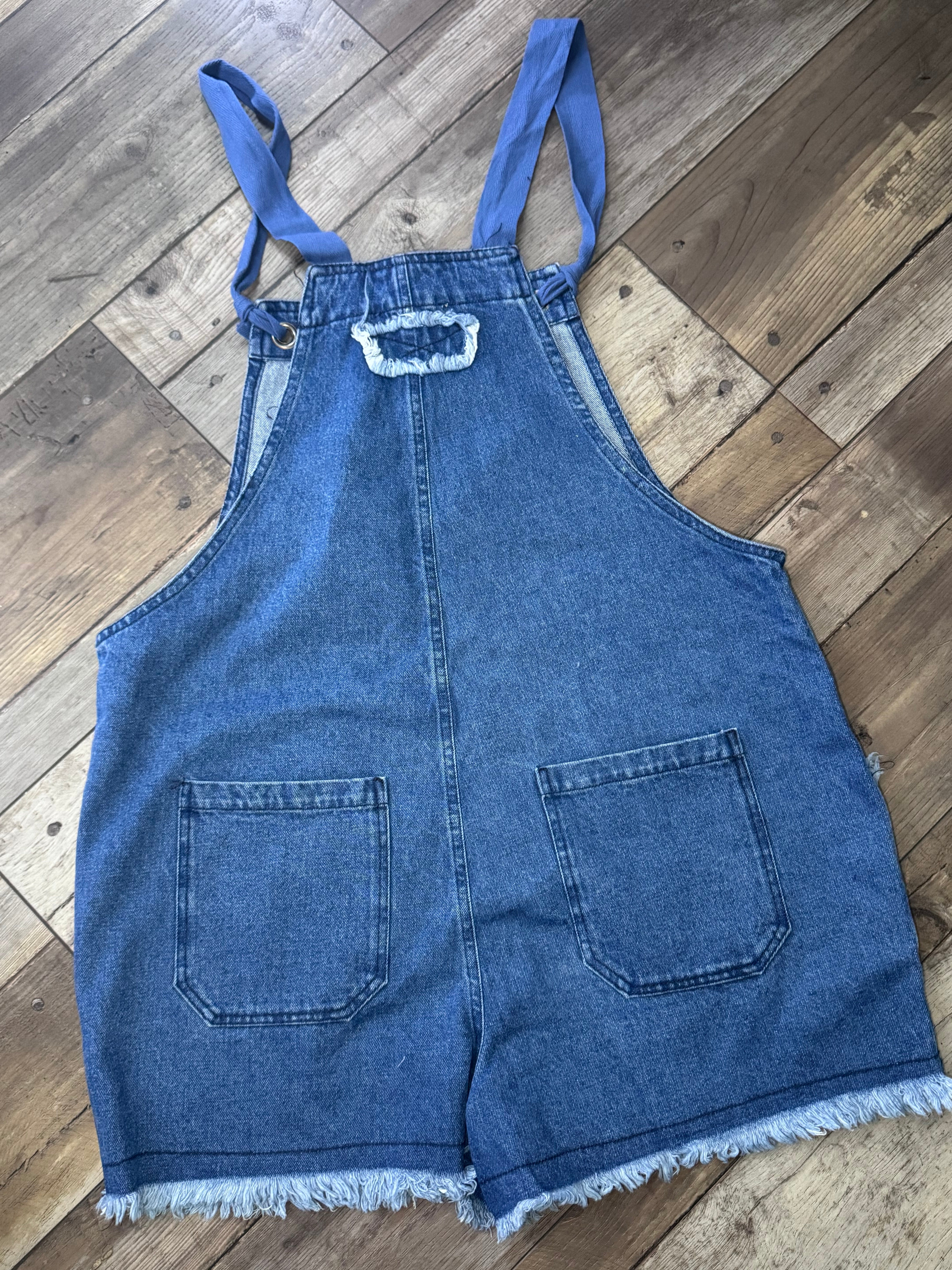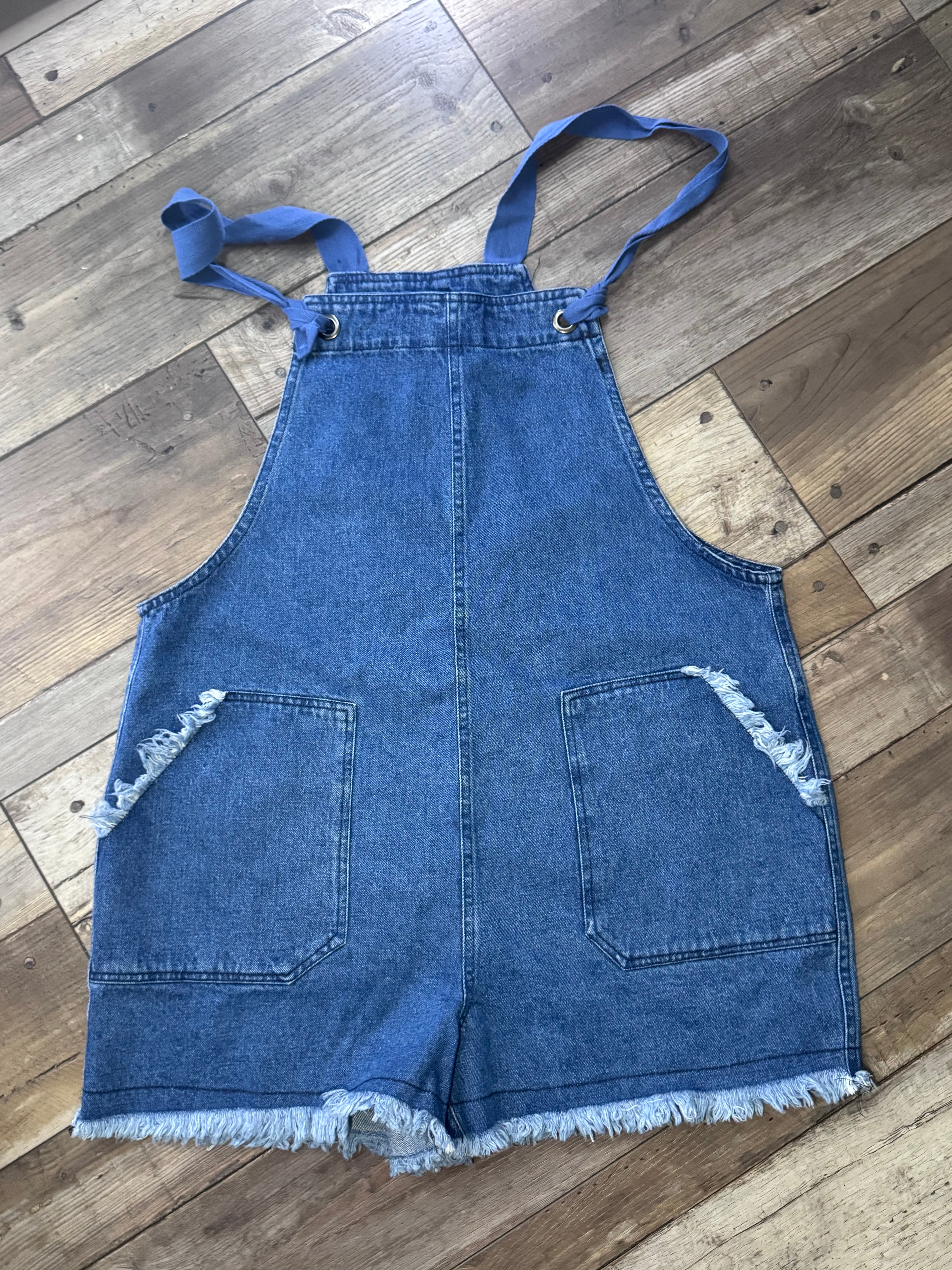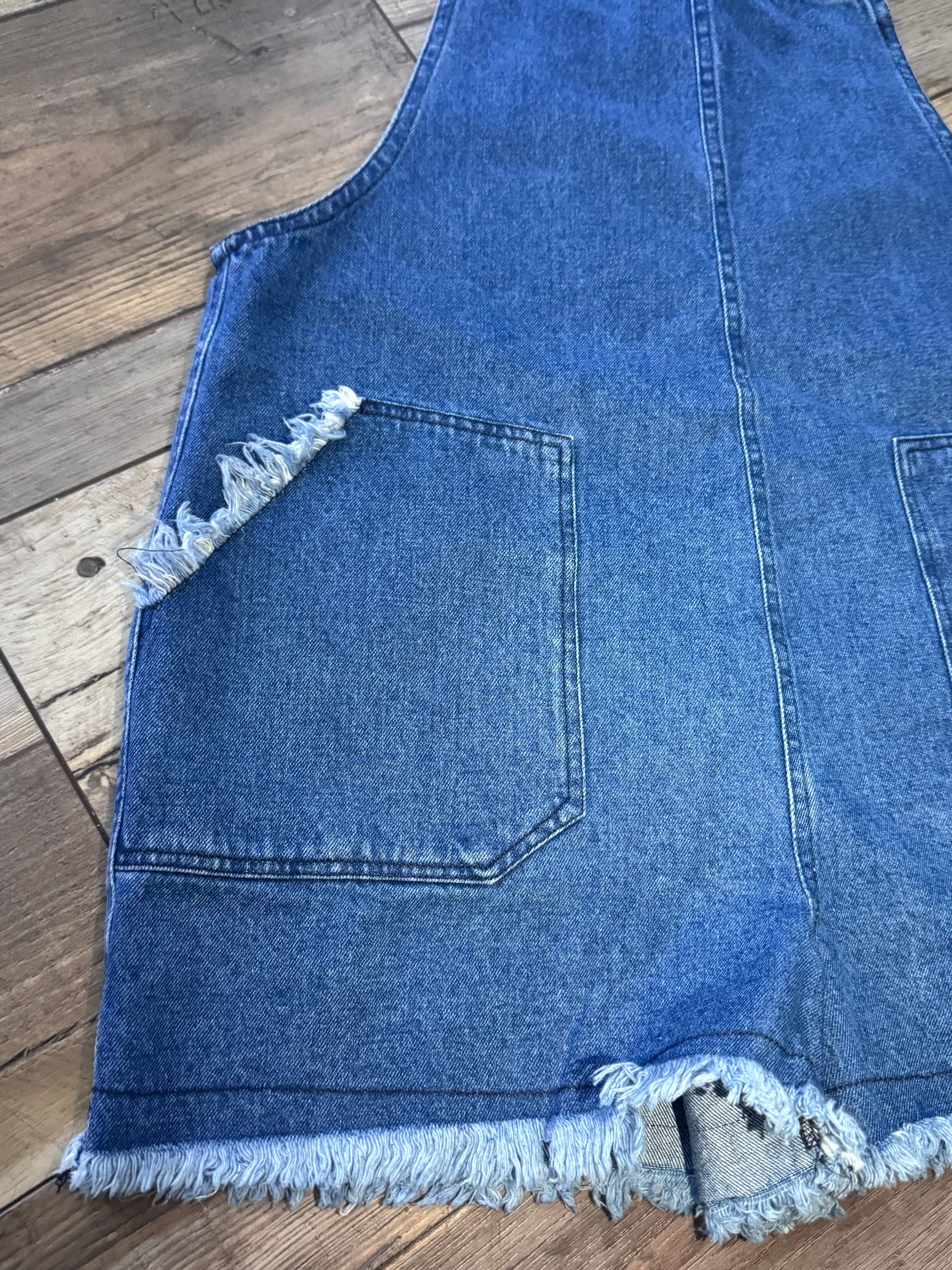 Washed Cotton Denim Casual Romper Overall - Sustainability Denim Romper Perfect For Vintage Fashion - Comfy Sleeveless Romper for Game Day - Side & Back Pockets - Frayed Hem