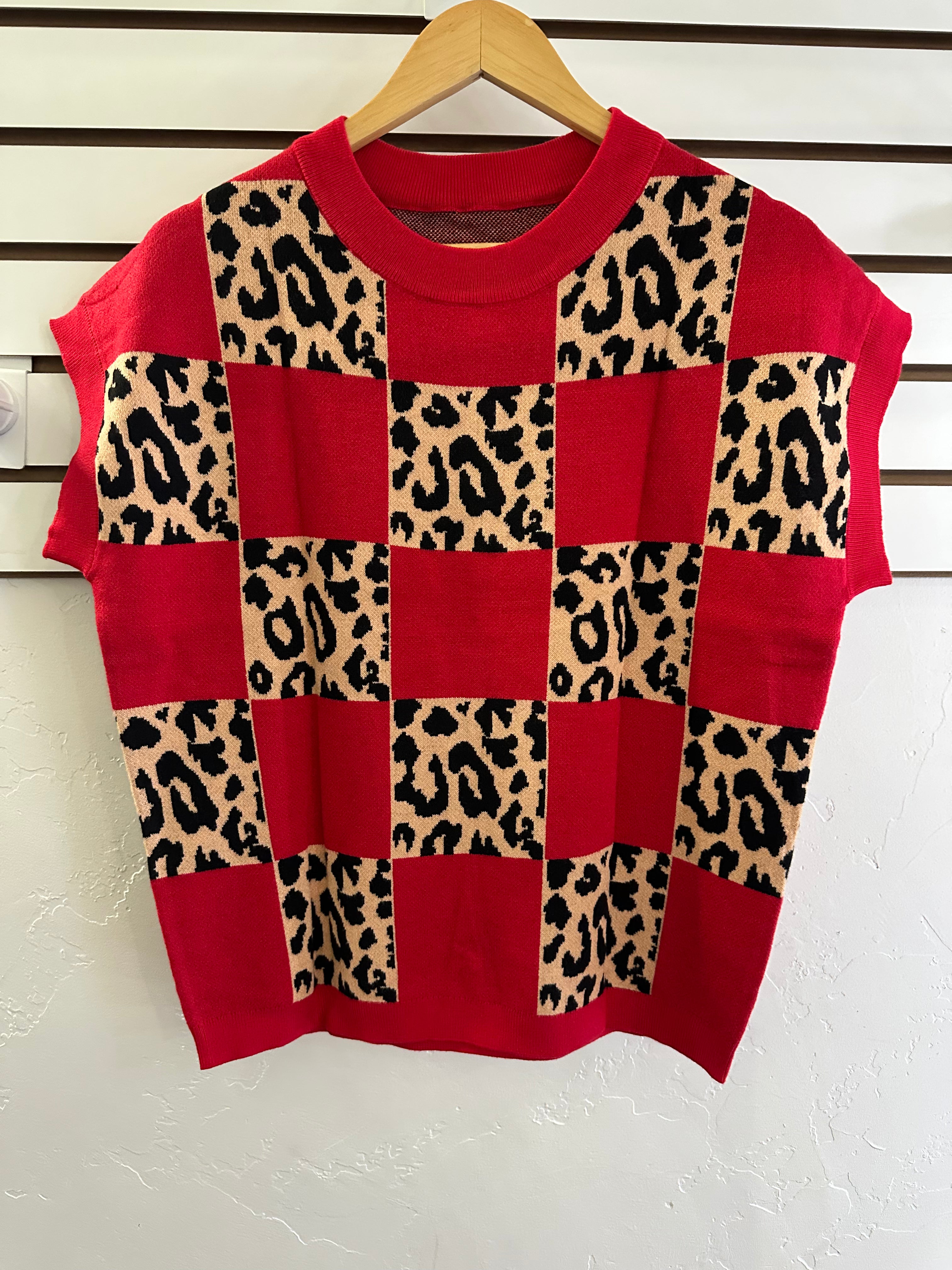 A sophisticated knit top that balances statement-making design with everyday wearability. The leopard check pattern and considered color palette deliver visual interest without compromising versatility. Engineered with a relaxed short-sleeve silhouette that prioritizes comfort while maintaining a polished aesthetic. This piece transitions seamlessly from casual pairings—think denim or midi skirts—to layered styling, making it a valuable addition to a curated wardrobe.
