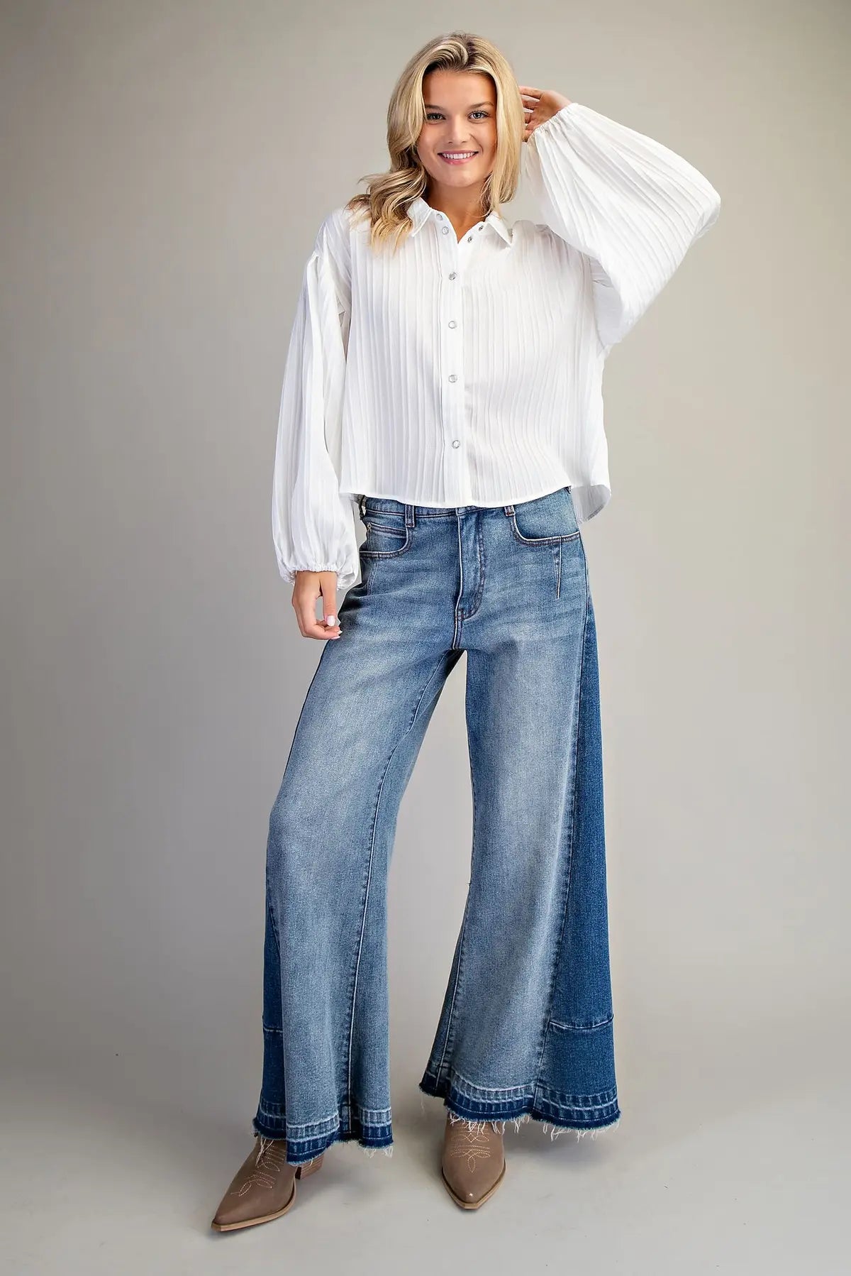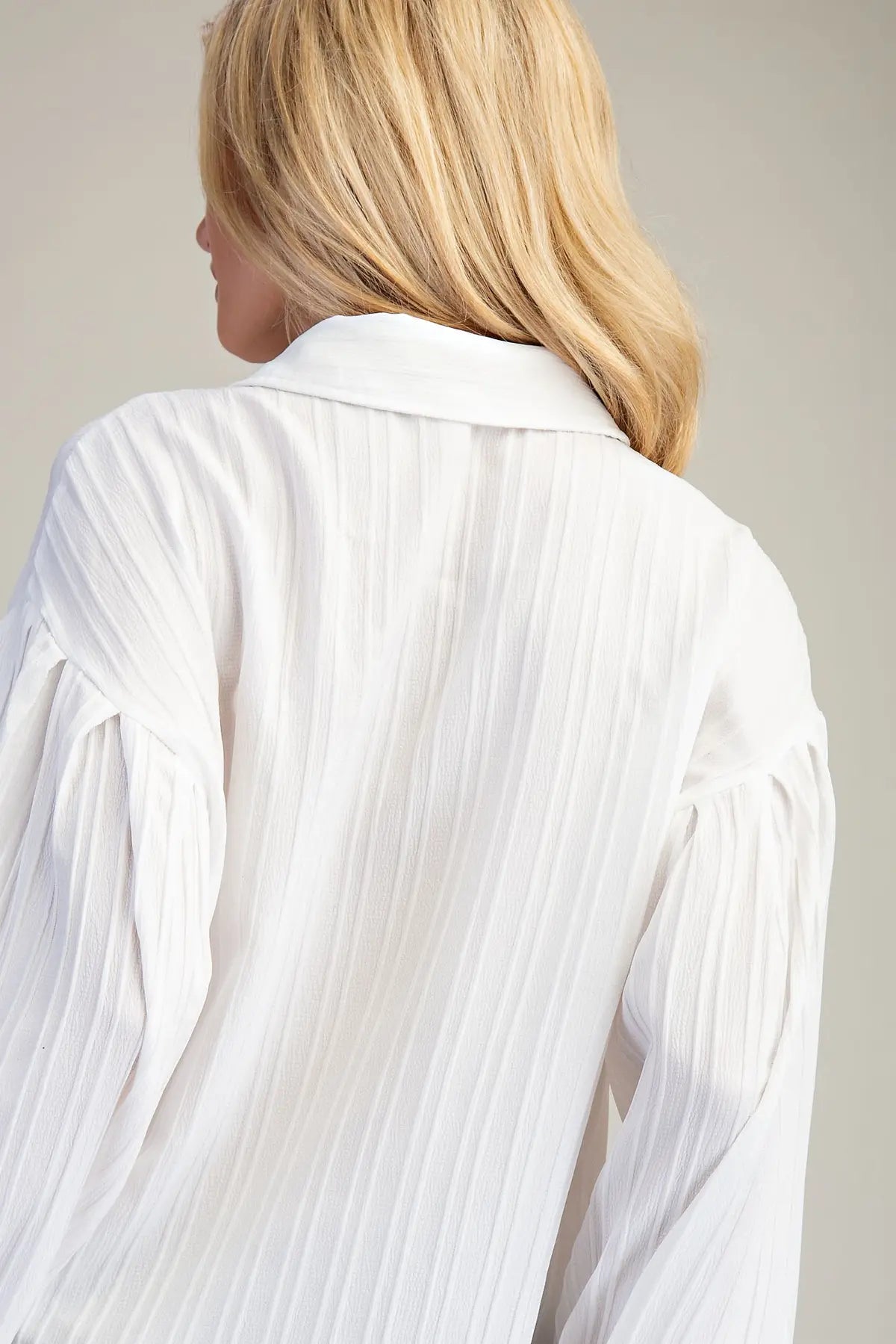 BUBBLE SLEEVE BUTTON DOWN BLOUSE TOP