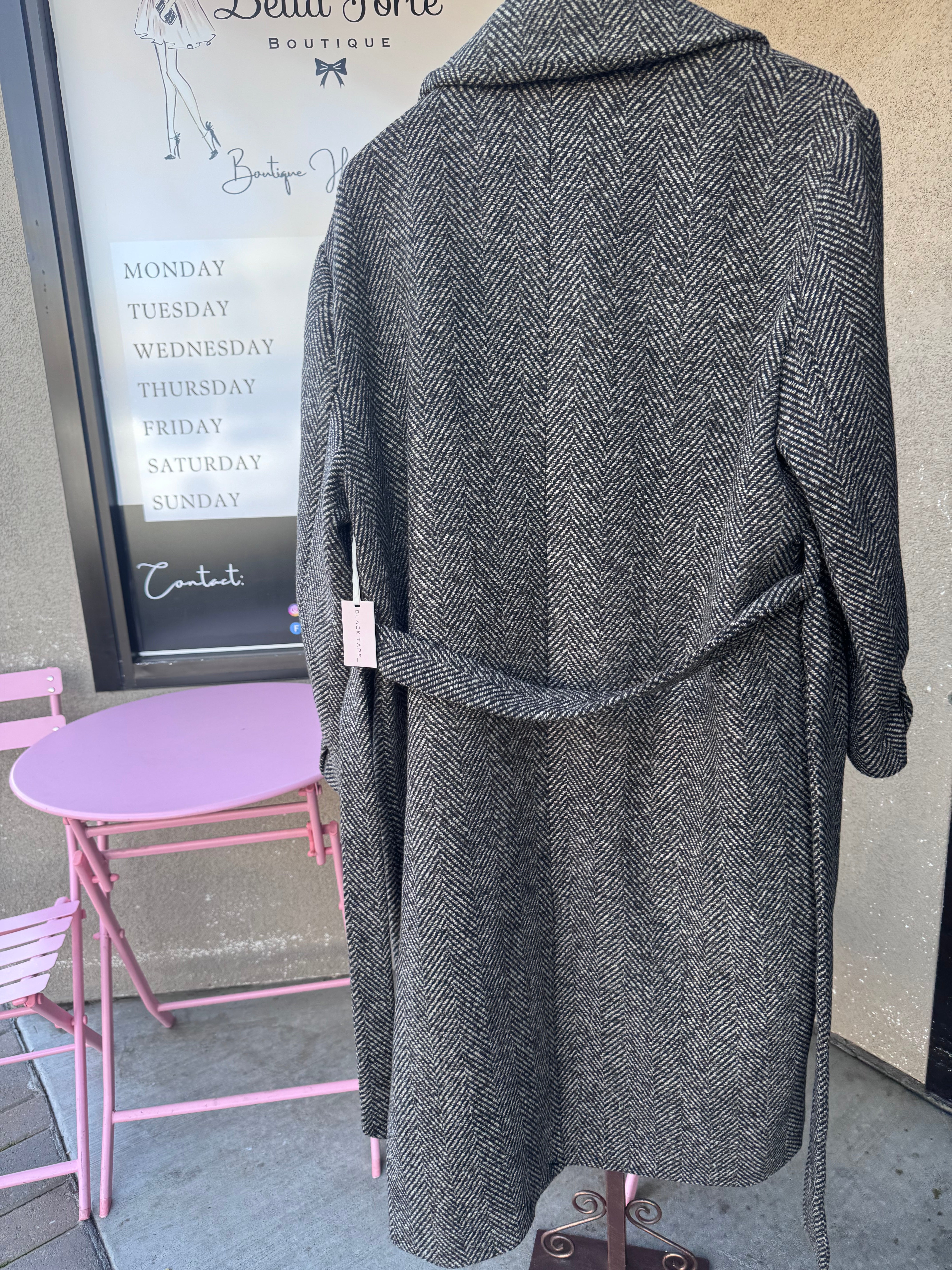 The Herringbone/Chevron Coat is a long coat designed to provide exceptional warmth and style. Its classic herringbone pattern enhances durability while offering a sophisticated aesthetic. Ideal for colder climates, this coat ensures optimal insulation, keeping you comfortable in temperatures as low as 30°F, making it a practical choice for winter wear.