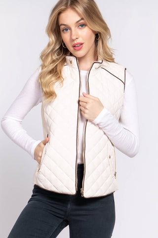 The Piping Detail Rib Quilted Padding Vest