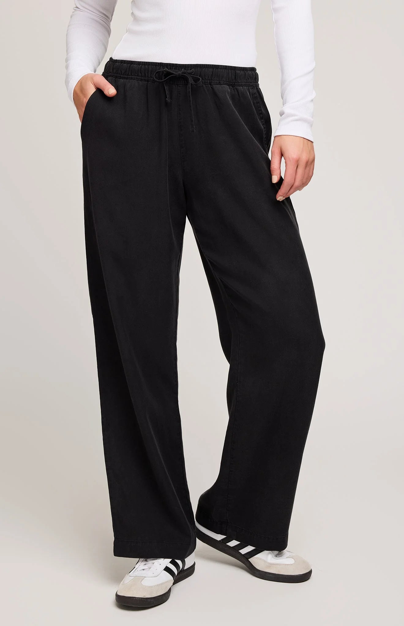 The Gabriel pant is made of tencel twill fabric that has been garment dyed to achieve a dimensional look and soft feel. Features include slash pockets and an elasticated waistband with adjustable drawcord