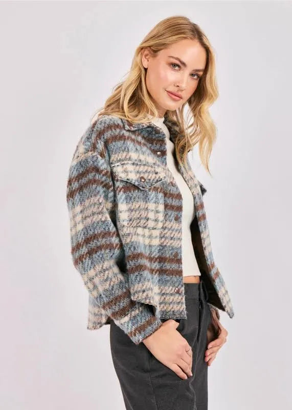 - Wool-blend brushed knit plaid