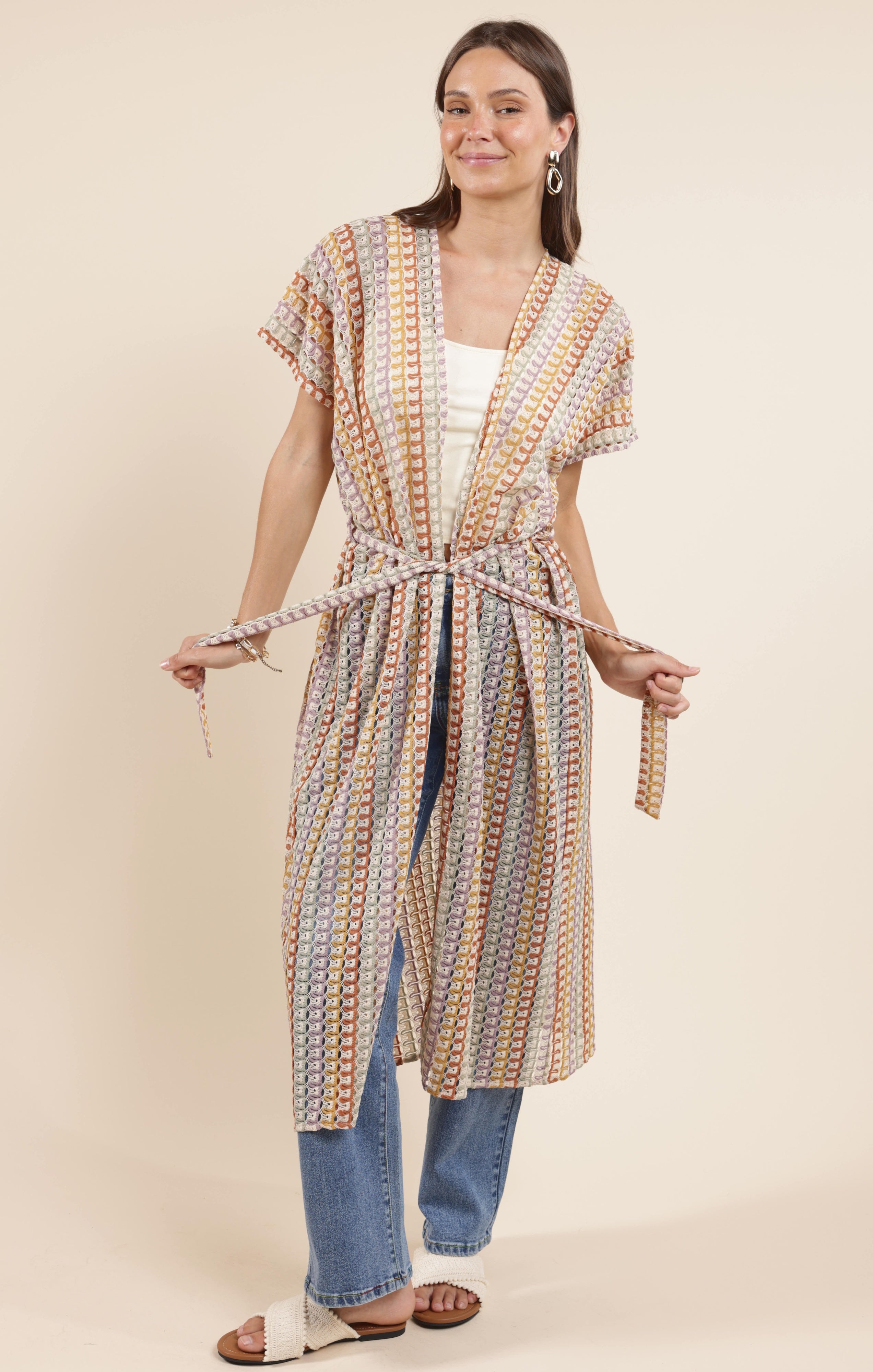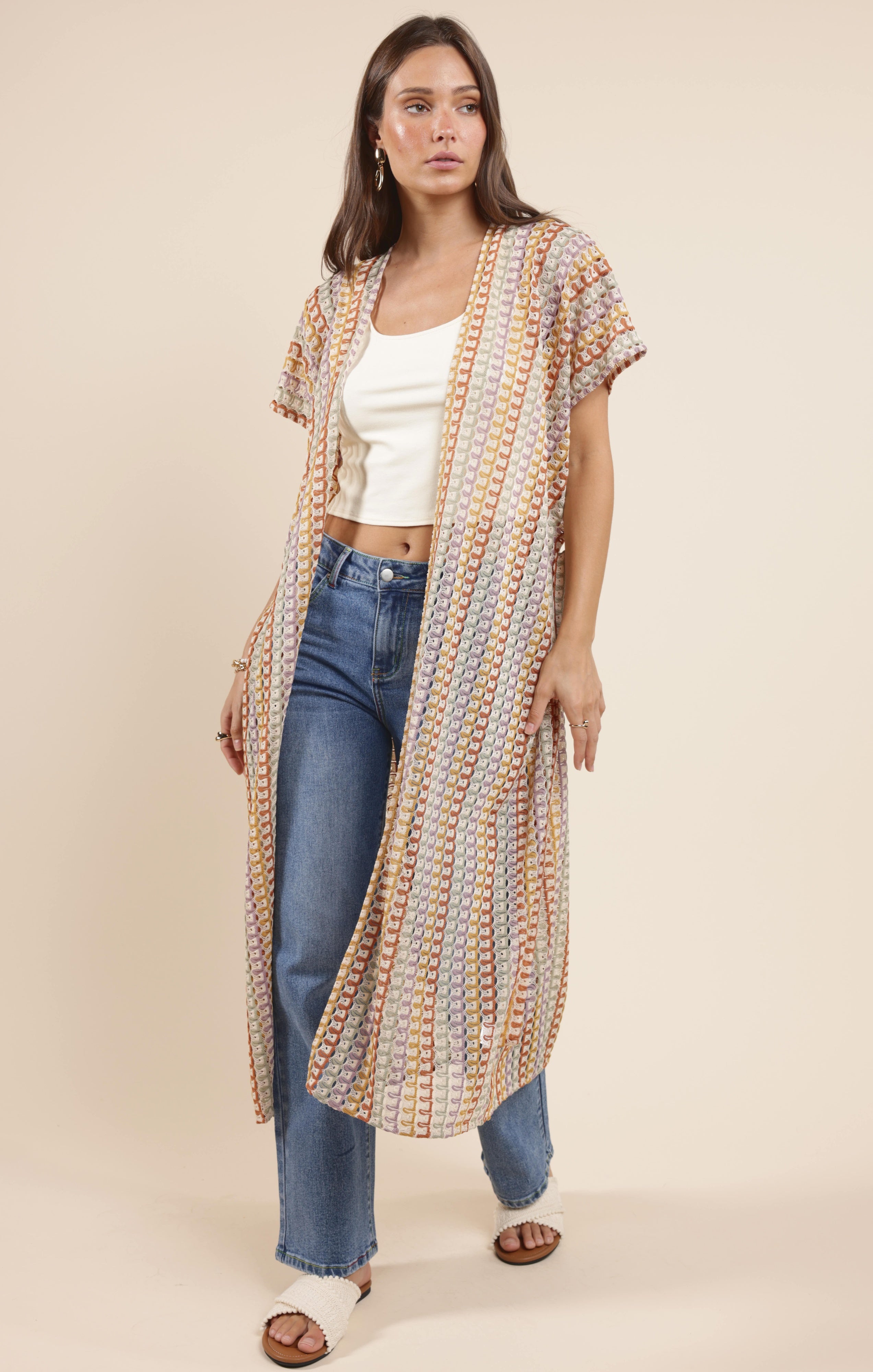 • Breezy open knit lace cover-up