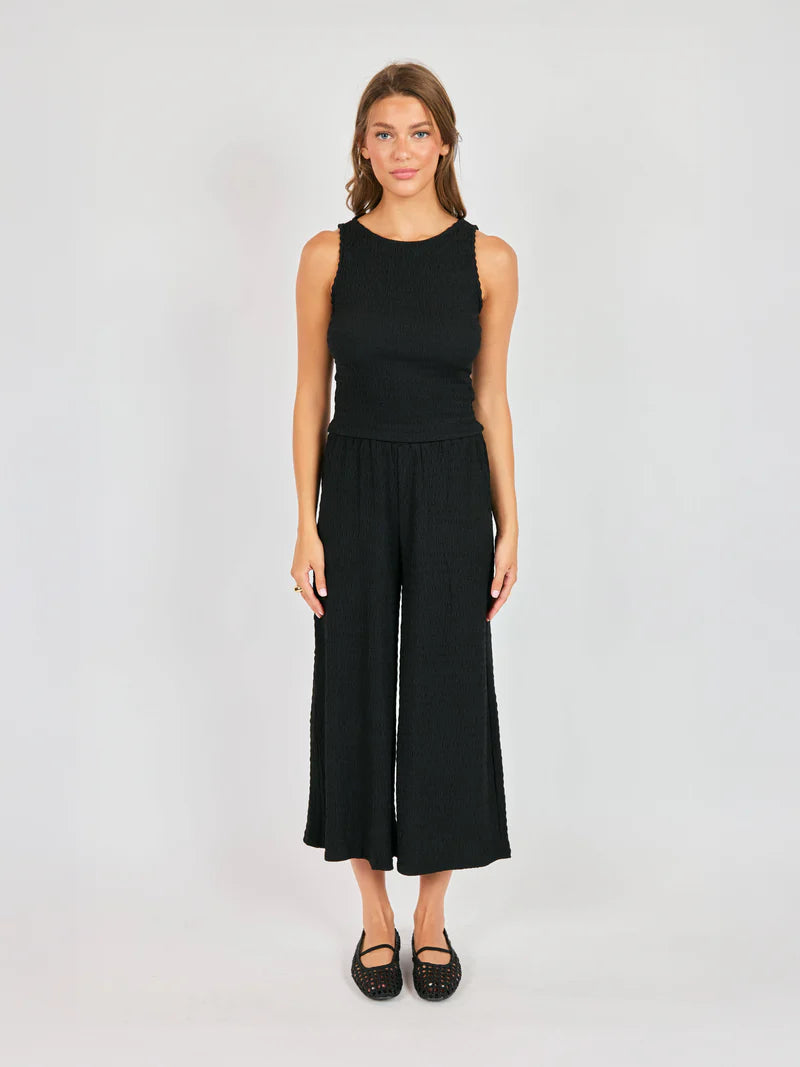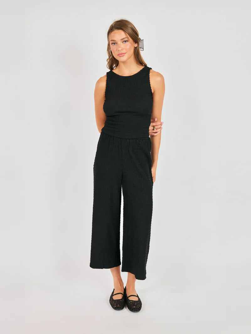 This black Howdy Honey Textured Tank features a flexible, all-over smocked knit, that emphasizes comfort without sacrificing a refined finish.