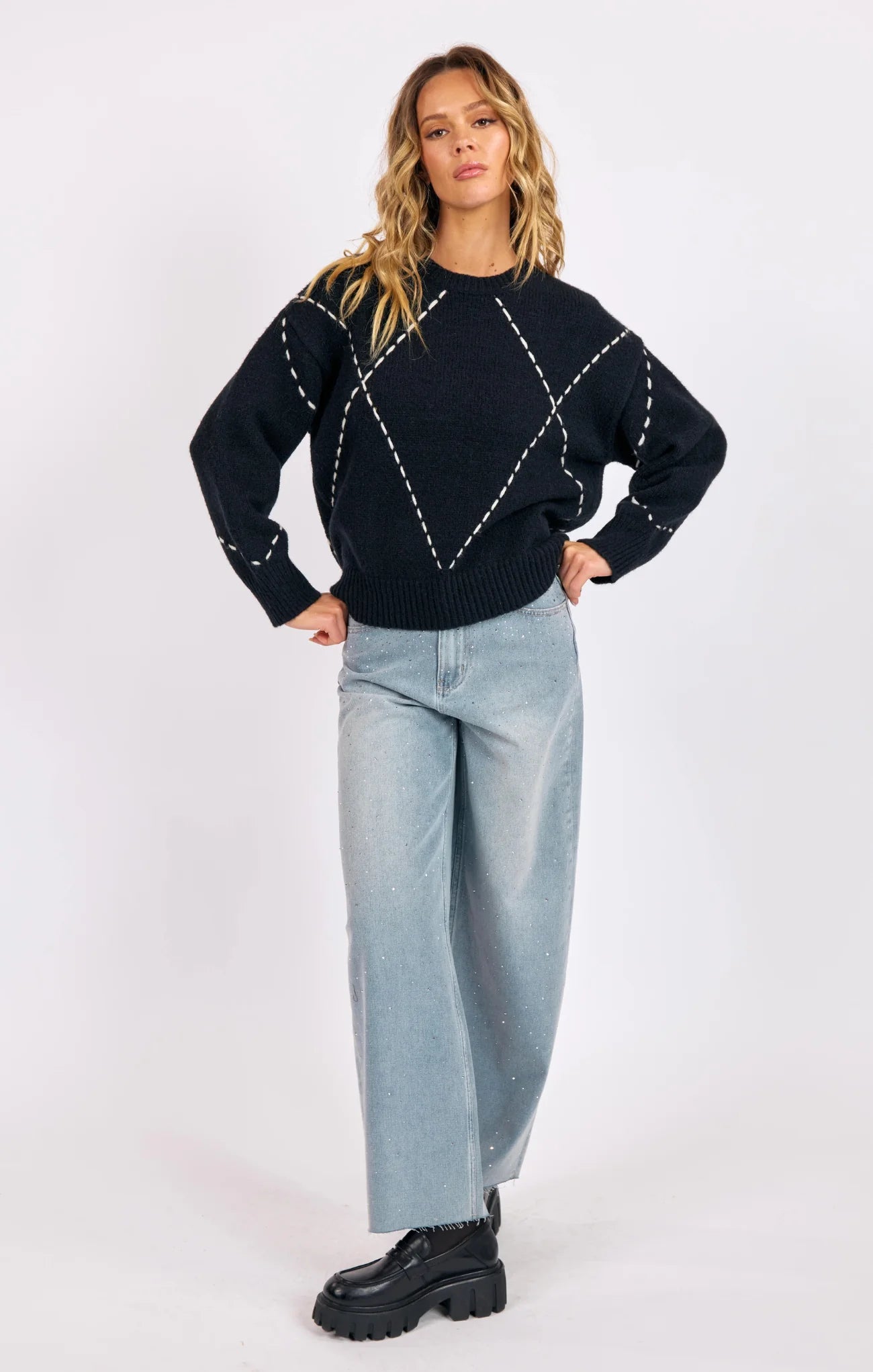 Add some fun flair to your cozy wardrobe with the Guest List Contrast Stitch Sweater. Featuring eye-catching contrast stitching, this sweater turns everyday comfort into a stylish statement. Perfect for lounging or layering, it keeps you warm while showing off your playful personality. Embrace casual cool with a twist!