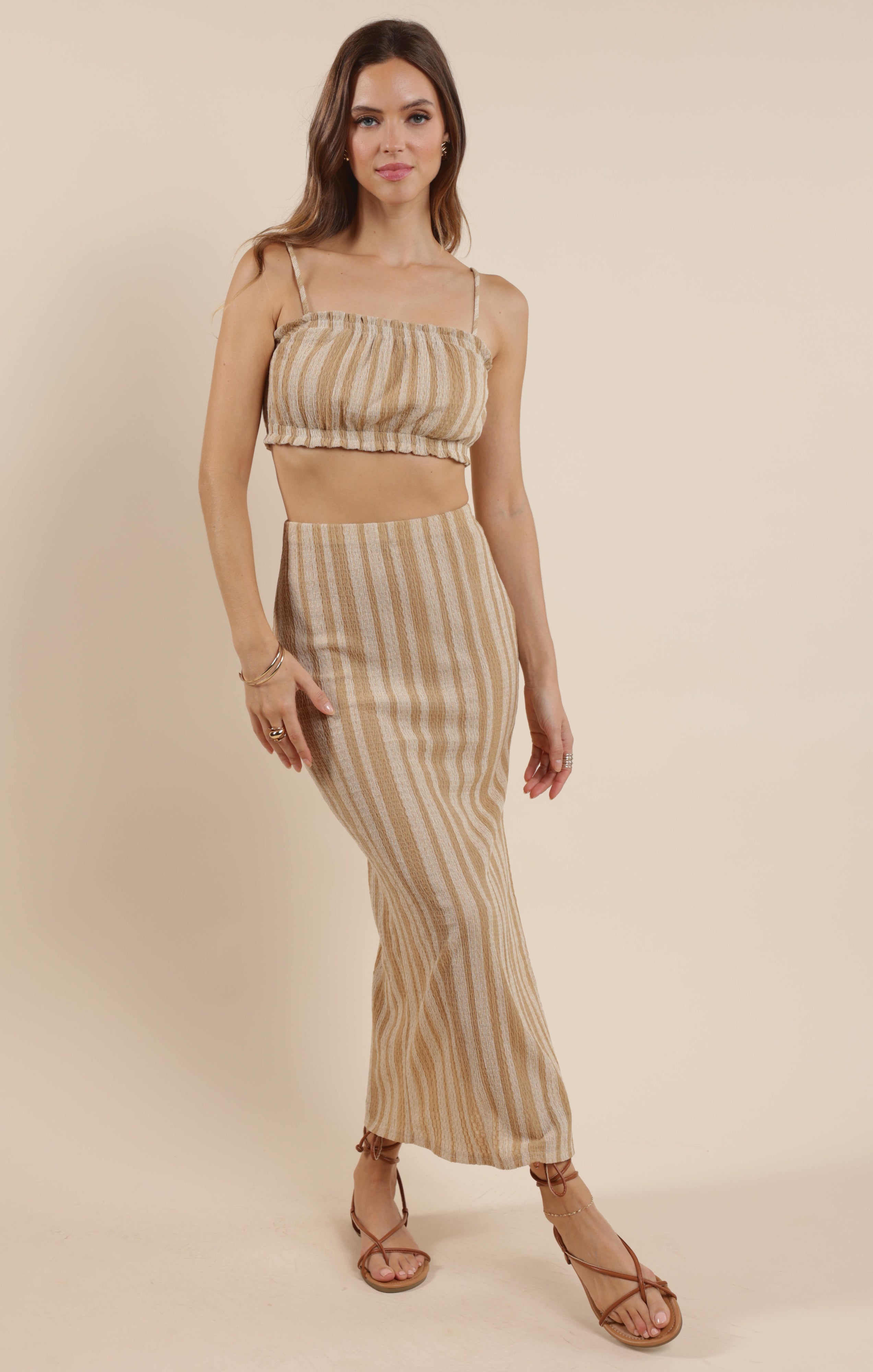 Ankle length knit column skirt with slit. Pair with "Locally Grown Top"