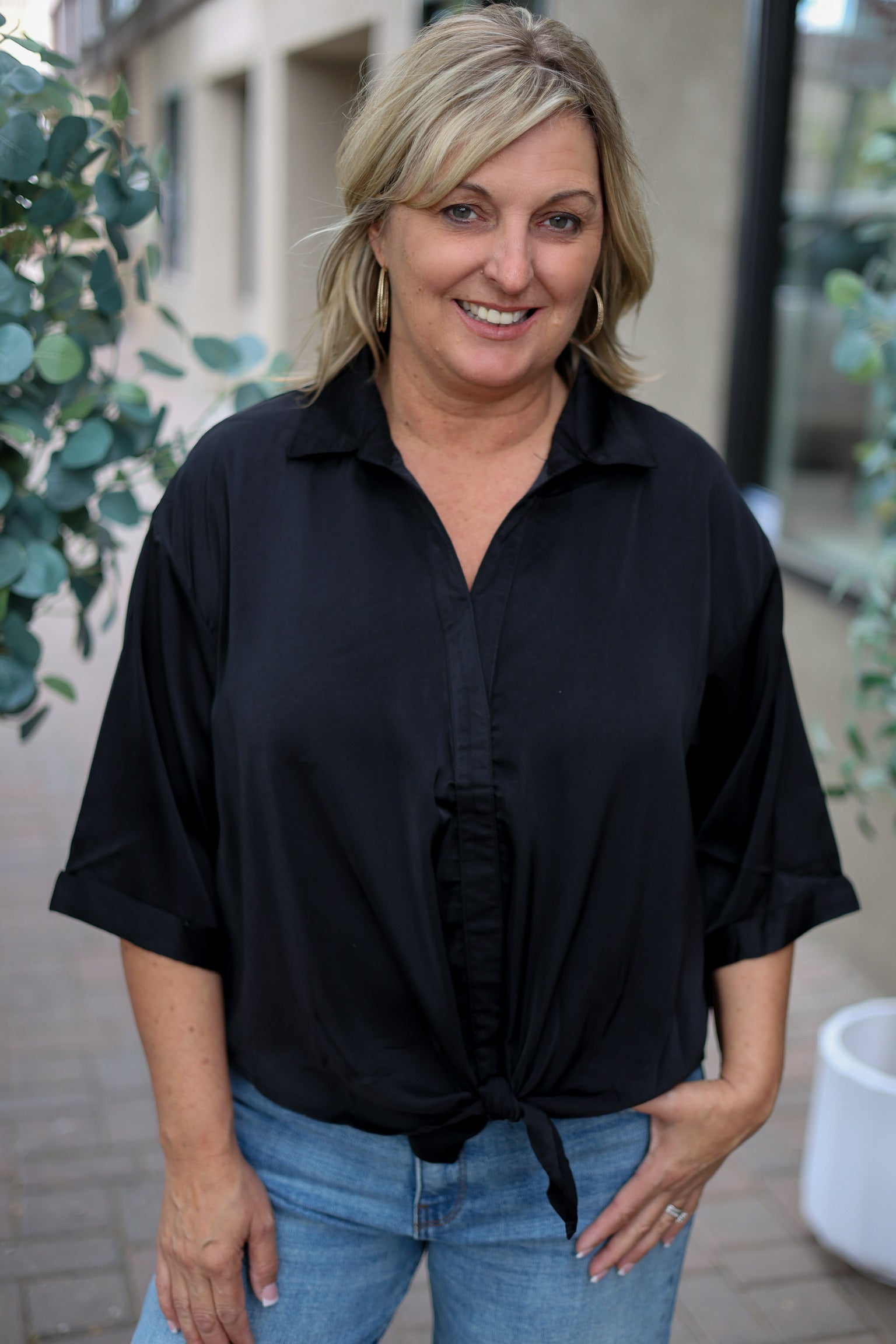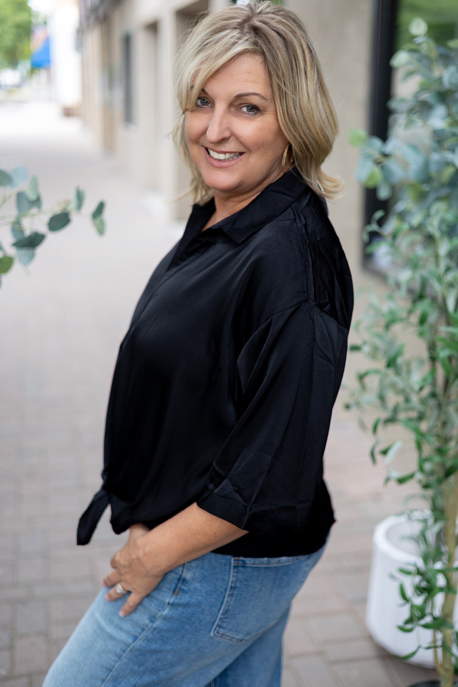 Get ready to look effortlessly chic with this satin collared button down top! Perfect for any occasion, from a girl's night out to a casual day at the office, this top is versatile, comfortable, and stylish. Plus, with its front tie feature, you can add a touch of personality to your look while showing off that waistline. And with sizes ranging from small to extra large, this top will flatter any body type. Get ready to turn heads and make a statement with our latest fashion must-have, the Satin Collared Button Down Front Tie Top!