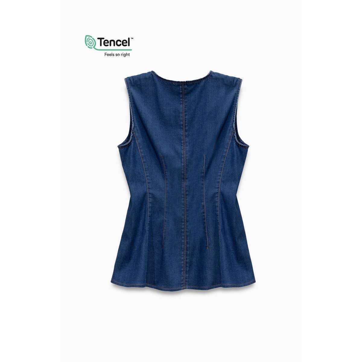 This sleeveless denim top for women features a classic button-down style crafted from ultra-soft Tencel™ fabric that feels smooth and breathable. Its flattering fit makes it a go-to for casual days or layering up with ease. Made from a comfy blend of 65% Tencel, 34% polyester, and 1% spandex, it’s best cared for with a gentle cold hand wash. Perfect for adding a fun, effortless vibe to your wardrobe!