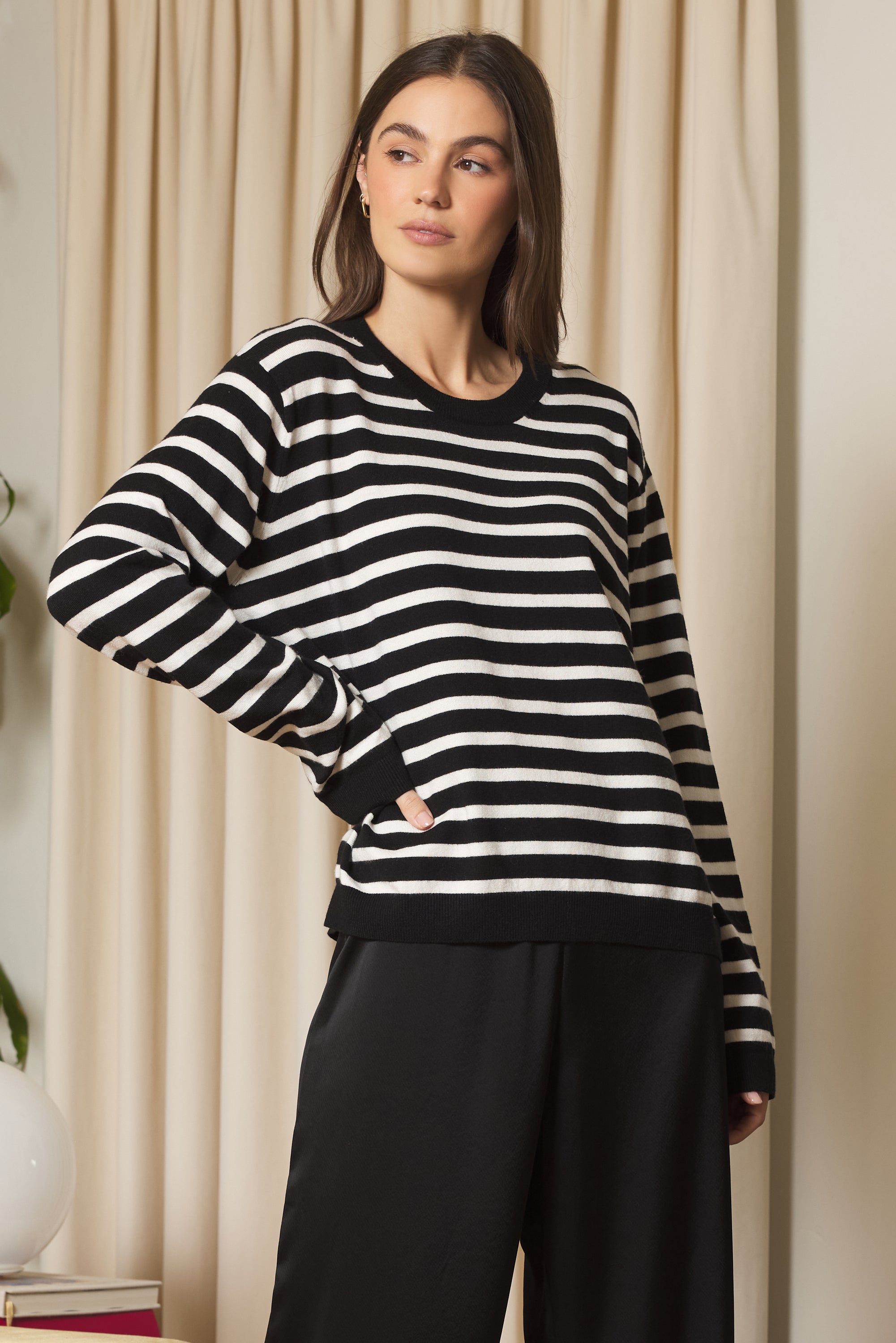 A refined crewneck that balances timeless design with contemporary styling. The SHANE features subtle striping that adds visual interest without compromising versatility, making it an essential layer for any wardrobe. Crafted for everyday wear, this piece transitions seamlessly from casual to polished occasions.