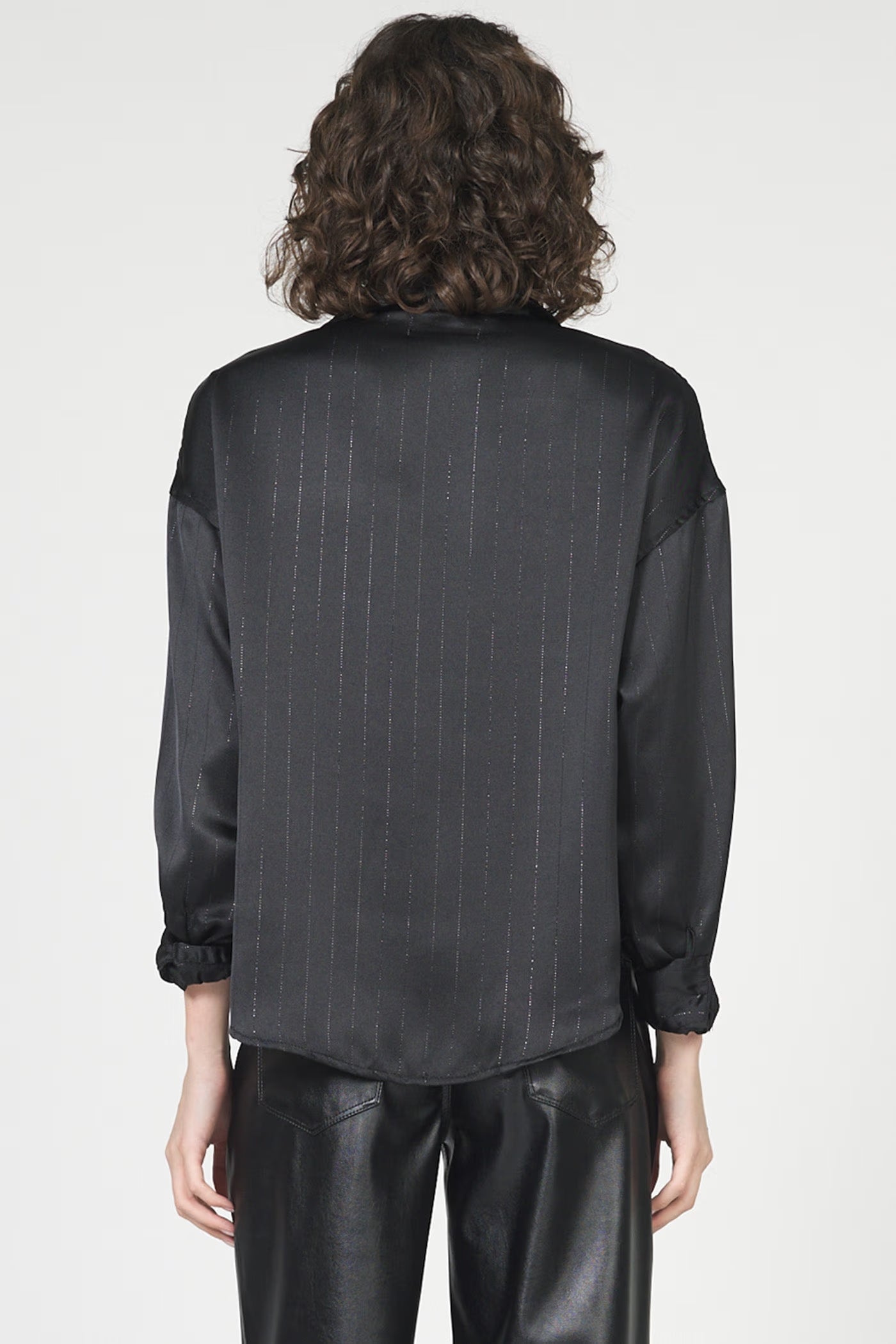 This long-sleeve oversized piece boasts a sleek and sophisticated look, adds a touch of modernity, while the satin finish ensures a chic and polished appearance to pair with your favorite bottoms.