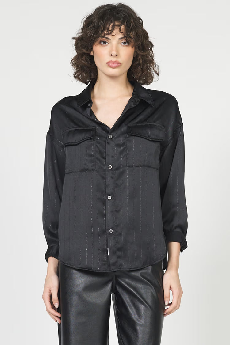Embrace timeless elegance with Adrianna button-up striped lurex shirt.