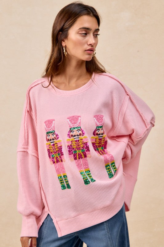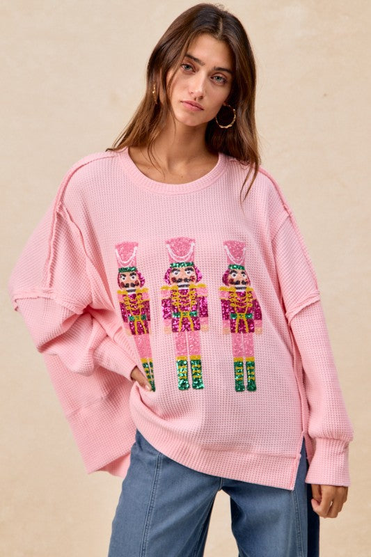 oversized waffle thermal sweatshirt featuring eye-catching