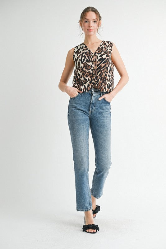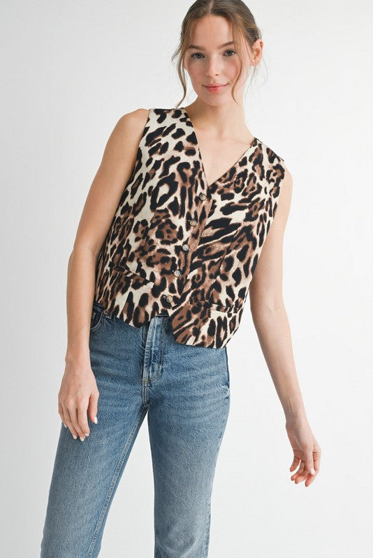 Unleash your wild side with our Vivianne Leopard Vest! This sassy button-down number adds instant flair to any outfit. Our 5'10" model rocks a Small in this 100% polyester stunner. Pounce on this fashion-forward piece before it prowls away!