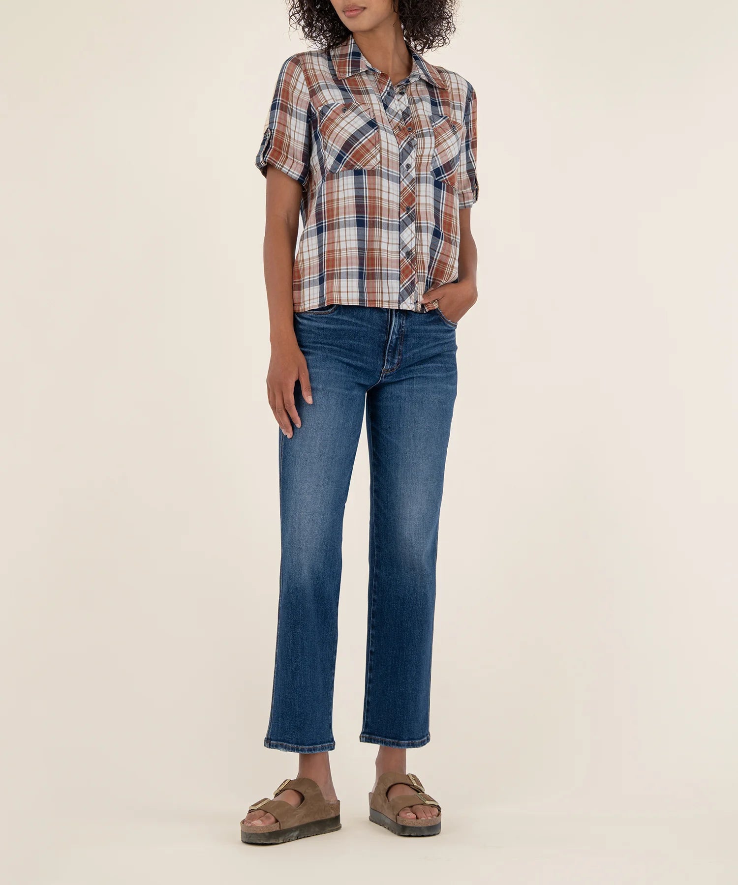 Crisp plaid maintains the classic casual style of a button-front shirt that's a reliable everyday favorite.