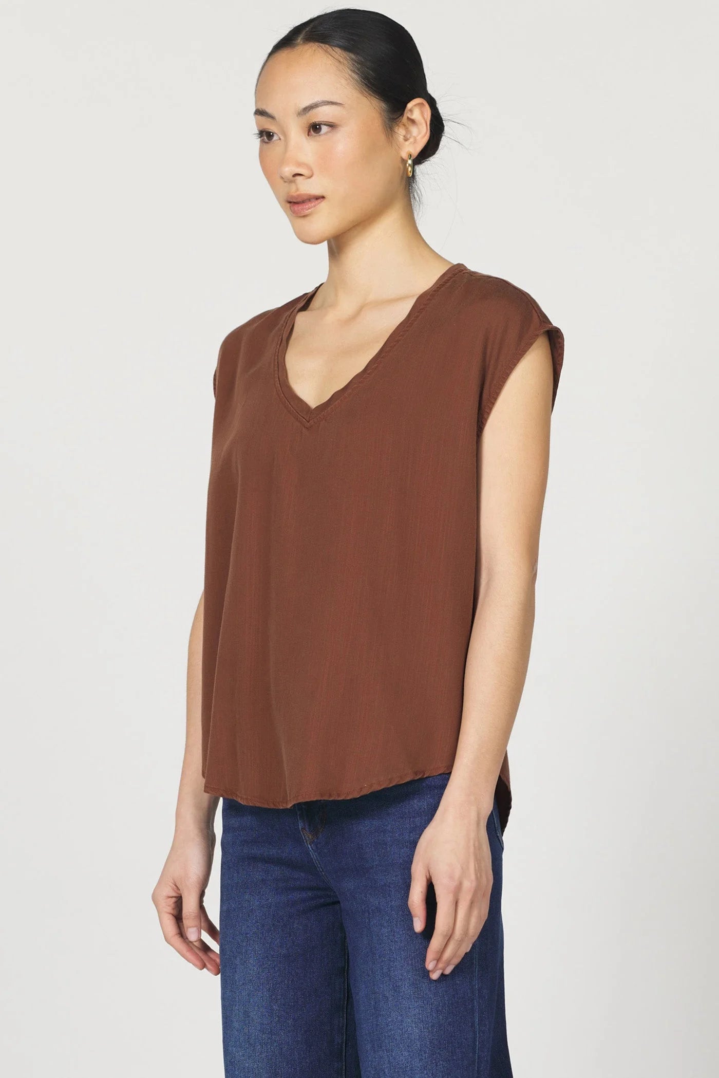 The Yanis lyocell top is effortlessly chic, sleeveless design features a flattering V-neckline and a back seam detail that adds a subtle yet modern touch.