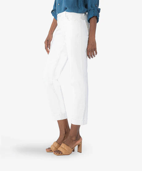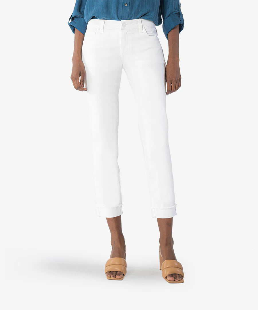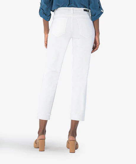 Amy Crop Straight Leg Roll Up Fray Hem (White)