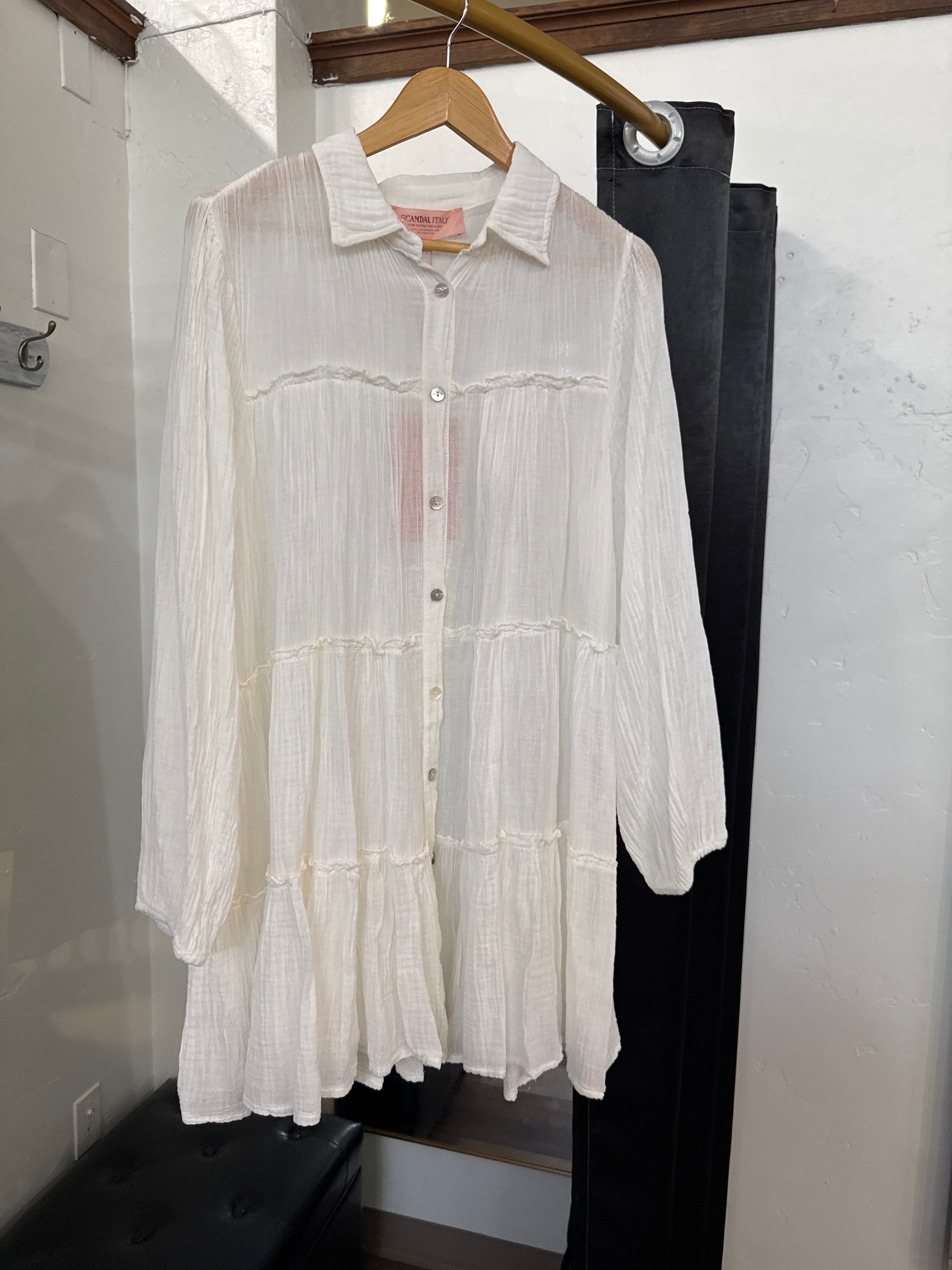 The Daphne presents an exquisite study in versatility—a pristine white tunic meticulously crafted by Scandal artisans in Italy. This refined garment transitions seamlessly from casual daytime elegance to evening sophistication without compromise. Its thoughtful silhouette offers a flattering embrace while maintaining an air of effortless refinement. Whether layered over swimwear for elevated beachside attire, adorned with curated accessories for evening engagements, or simply appreciated for its impeccable craftsmanship, The Daphne exemplifies the rare harmony of versatility and elegance. Italian tailoring ensures each detail contributes to a piece that appears deceptively simple yet performs with remarkable versatility.
